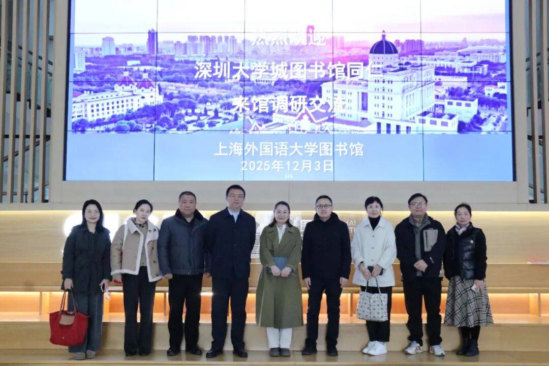 为深化馆际合作,共享图书馆建设经验,促进双方在面向留学生服务体系建设、多语种资源建设及服务等领域的协同发展,深圳大学城图书馆副馆长闫伟东带队,综合部主任张玲等7人在12月3日上午到访上海外国语大学松江校区图书馆,上外图书馆馆长蔡迎春、副馆长胡正明及相关部门负责人热情接待了来访团队,双方围绕图书馆跨文化学术支持与信息素养教育、国际学生阅读推广、面向留学生服务的图书馆馆员队伍建设等方面展开深入交流。