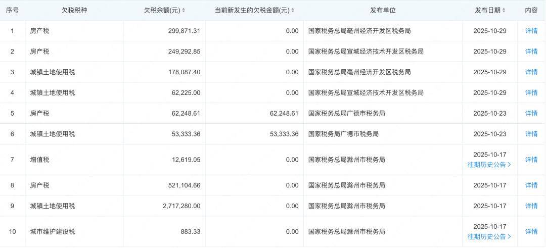 中公教育2025年以来的欠税情况截选/图源:企查查