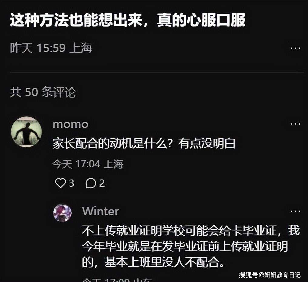 但是毕业资格都没有的话,那肯定谁也不愿意。老师估计就可以从中暗暗的给家长施压,如果不把就业的资格报上来的话,那毕业证肯定就是卡着放不下来。