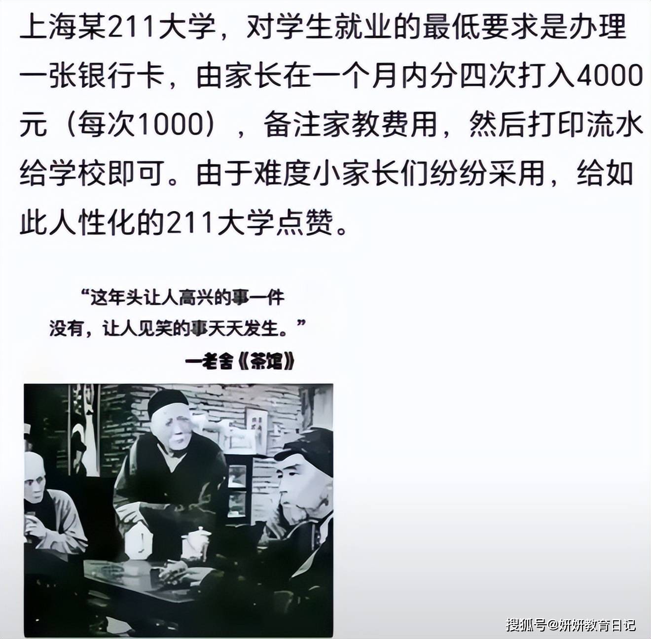 211的名声本身就是靠着学生优秀的就业率堆叠起来的。可是现在他们跟家长这样里应外合,主打一个你情我愿。