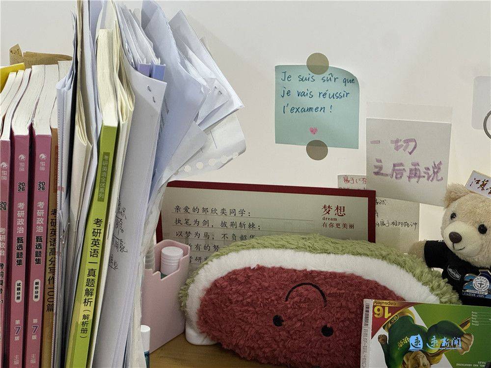 陆晓涵是典型的“稳扎稳打型”。“我最先抓的是英语,专业课也跟着一轮一轮过。”陆晓涵说,成为一名研究生是她一直以来的梦想,但她并不会给自己太大压力,放轻松才能发挥好。