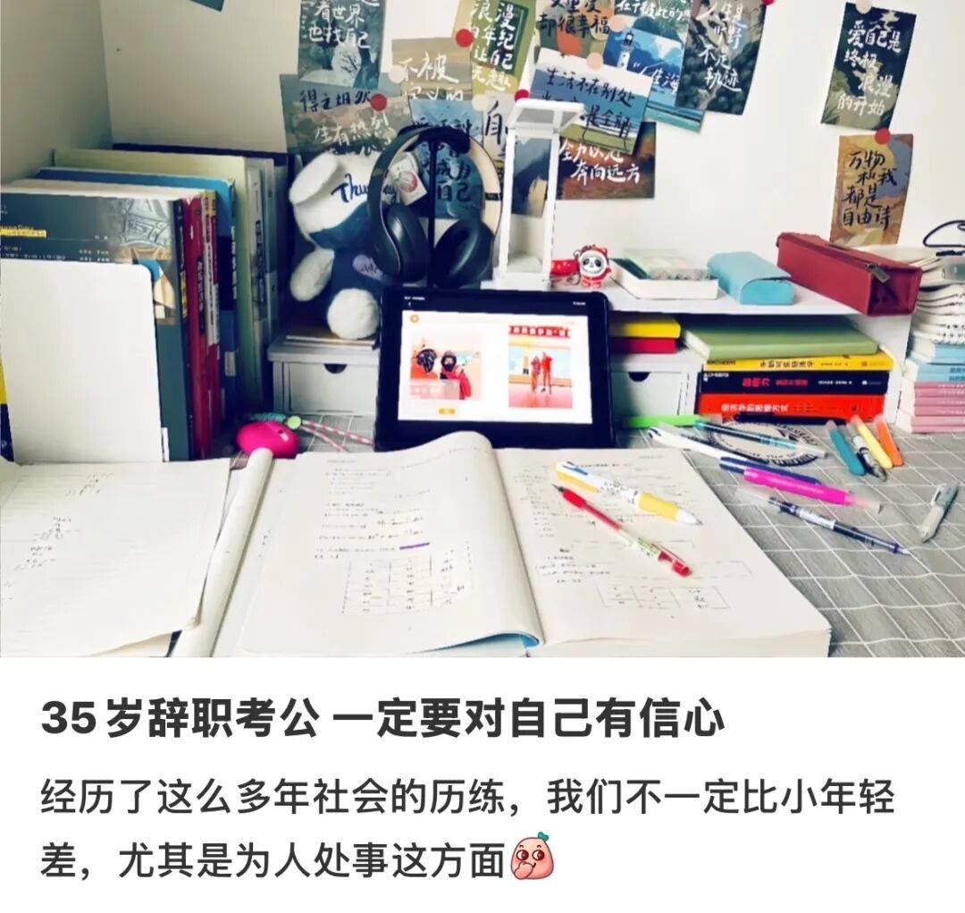 虽然有些人觉得,35岁就该老老实实认命,别瞎折腾了。但在太一看来,“35岁正是拼搏的年纪。再说了,经历了十几年的拼搏,无论考上什么岗位都有种已经退休了的松弛感,想到这里干劲就满满了。