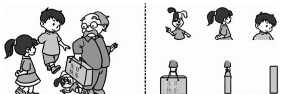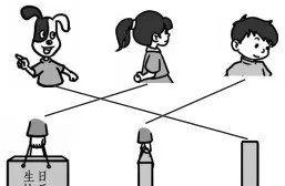 下面是笑笑、乐乐和机灵狗在不同的位置观察到的生日礼物,连一连。