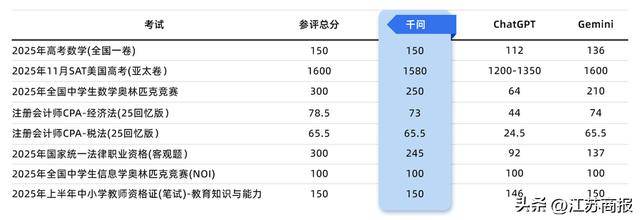 在被誉为美国大学入学“金标准”的SAT考试中,千问以1580的高分超越全球99%的考生,成绩达到哈佛、斯坦福、麻省理工等顶尖学府的录取水平。SAT不仅考察学术知识,更注重逻辑推理与批判性思维,其难度与国际认可度使这一成绩极具含金量。