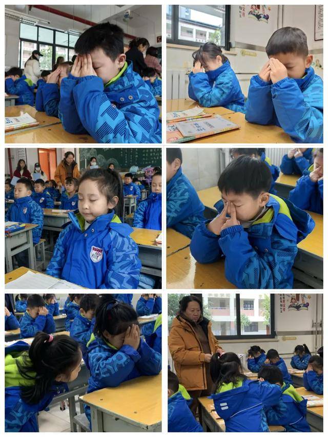 眼保健操期间,同学们神情专注,动作规范到位,能准确找到相应穴位。班干部认真巡视、及时提醒,共同维护视力健康的良好氛围,展现出初步的自我管理与互助意识。