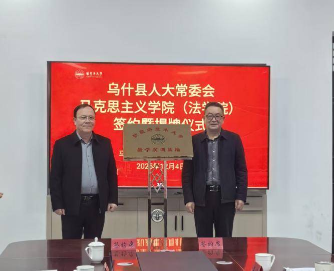 2025年12月4日,新疆乌什县人大常委会与塔里木大学马克思主义学院(法学院)在塔里木大学正式举行签约揭牌仪式。此次活动由马克思主义学院(法学院)党委书记王志刚主持,标志着我县在法治建设与高等教育协同发展方面迈出实质性步伐。
