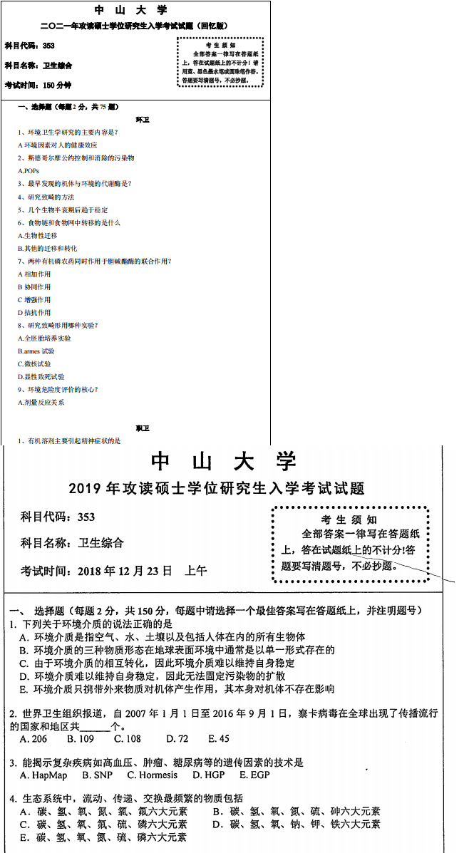 2023年中山大学353卫生综合真题【回忆版】