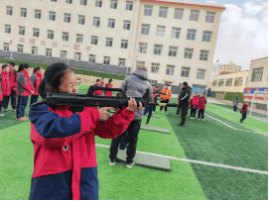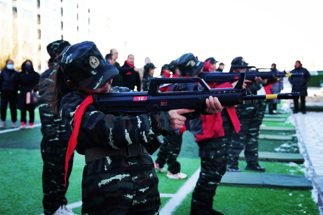 2022年,百灵庙第二小学以《全民国防教育大纲》为根本遵循,与达茂旗人武部深化联动协作,锚定“国防育人”核心理念,创新构建“文化共融、军体协同、五育互促”三维育人体系,推动国防教育与德智体美劳五育全方位、深层次融合。双方共建的国防教育展厅内,珍贵历史文献与精致军事兵器模型交相辉映,让红色记忆可触可感、红色精神代代相传;标准化打造的军事体能训练区,攀爬架、平衡木等设施科学布局、功能完备,成为学生锤炼坚毅意志、强健体魄的“成长训练营”;军事射击体验区依托专业模拟装备,让学生在安全可控的环境中,直观感受现代军事的科技魅力与磅礴力量。这些优质硬件设施不仅筑牢了国防教育的实体根基,更将抽象的国防知识、深厚的家国情怀转化为可触摸、可感知、可参与的实景课堂,让草原少年在沉浸式体验中潜移默化萌发国防意识,厚植爱国爱党爱军的真挚情感。