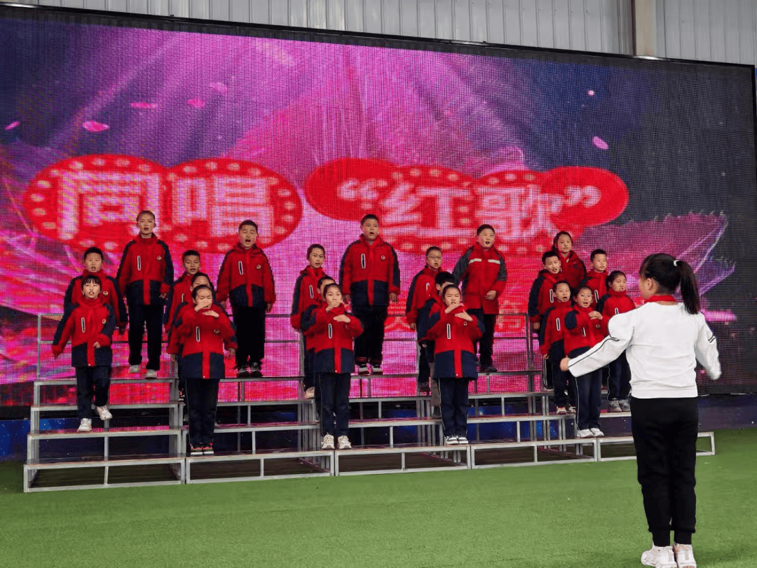 “纸上得来终觉浅,绝知此事要躬行”,学校以实践活动为纽带,让红色基因在亲身体验中代代相传。通过常态化组织学生走进百灵庙抗日武装暴动纪念馆、达茂旗烈士陵园、驻地军营等场所,开展“重走革命路”“与军人面对面”“兵器零距离”等实践活动,引导学生在历史现场感悟先辈们的家国情怀。2023年,在“红色铸魂 国防筑梦”大思政实践展示活动中,学生们身着迷彩服进行军体操演练、朗诵红色经典,将国防热情转化为生动的艺术表达;2024年“红色达茂旗”系列活动里,低年级学生用画笔勾勒“我心中的英雄”,用童声唱响红色歌曲;高年级学生则化身“红色讲解员”,讲述草原革命故事,在“学、讲、演、传”中,让红色精神真正内化于心、外化于行。