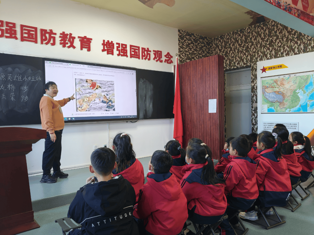 同时,围绕“红色达茂旗”这一主题,学校还专门开设了红色小课堂,分年级开展特色实践活动;低年级通过“丹青妙笔画英雄”和“歌声嘹亮唱英雄”活动,激发情感认同;高年级组织“绘声绘色讲英雄”和“追根溯源学英雄”活动,引导学生在亲身体验中传承红色精神、讲好时代故事。这一系列举措增强了国防教育的针对性与感染力,真正实现国防知识“入脑入心”。