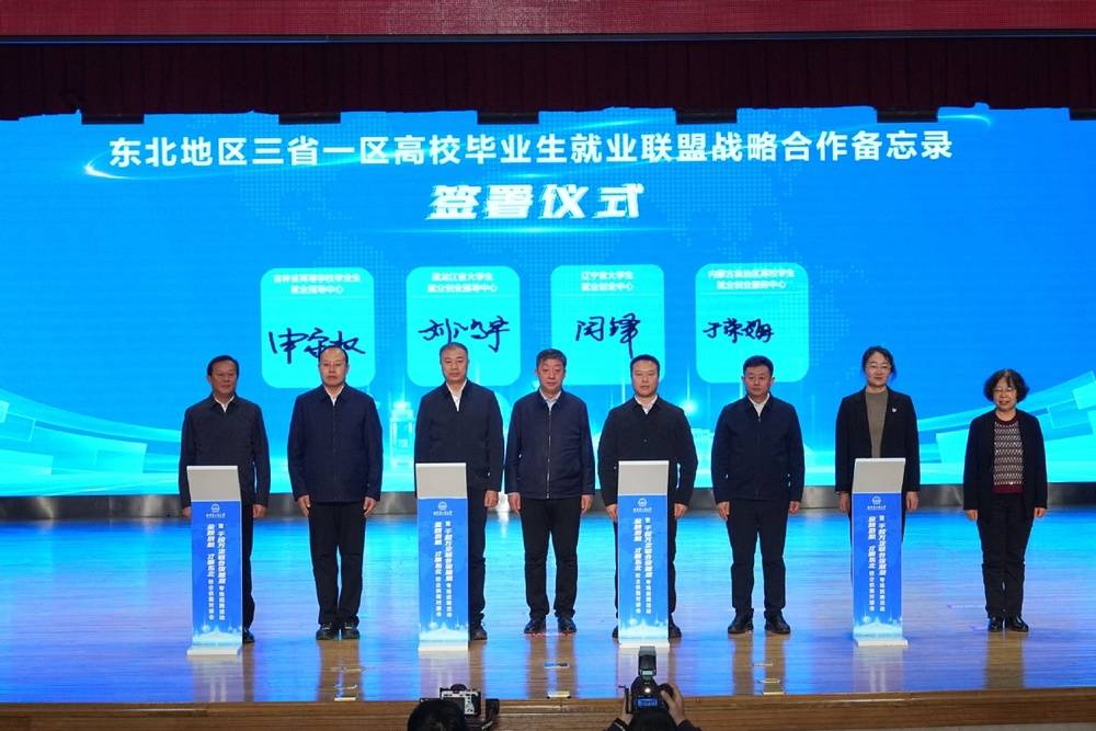 启动仪式上,东北三省一区代表共同签署《2025年东北地区高校毕业生就业联盟战略合作备忘录》。