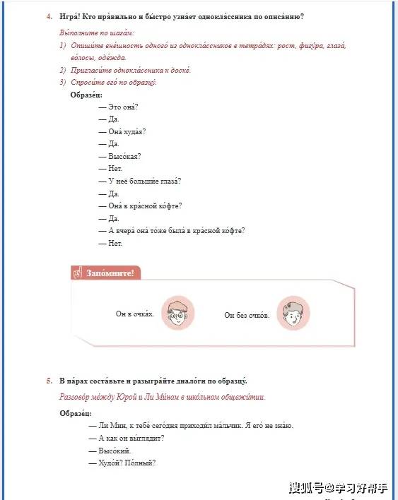- 写作:注重 “基础积累 + 逻辑构建”—— 先积累常用词汇(如连接词 “и” 和、“но” 但是、“так как” 因为)与基础句型(如 “Я люблю...” 我喜欢...、“В нашем классе...” 在我们班里...),再学习段落划分(开头引入主题、中间展开内容、结尾总结),通过撰写日记、短文(如 “我的周末”“我喜欢的学科”)强化应用,提升写作逻辑性。