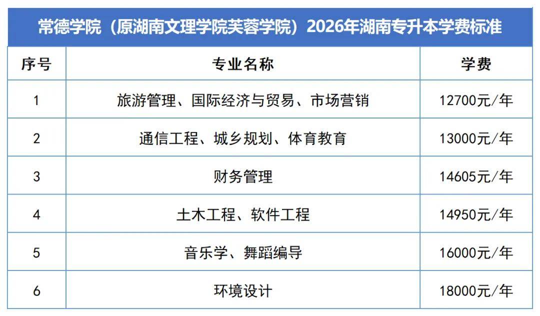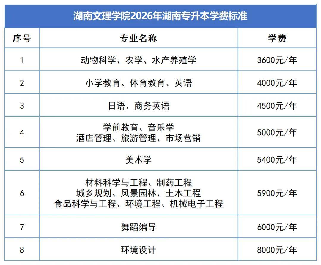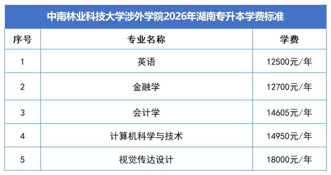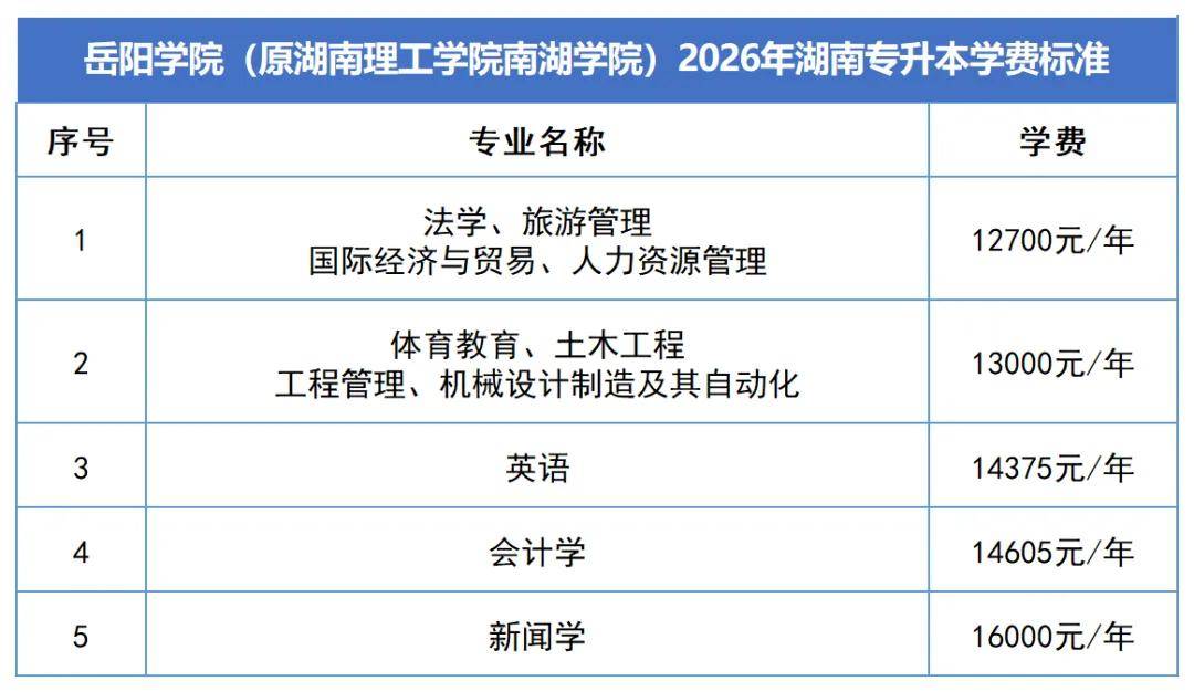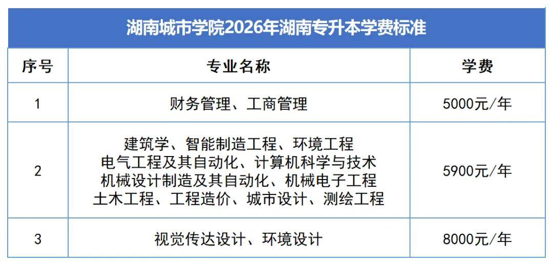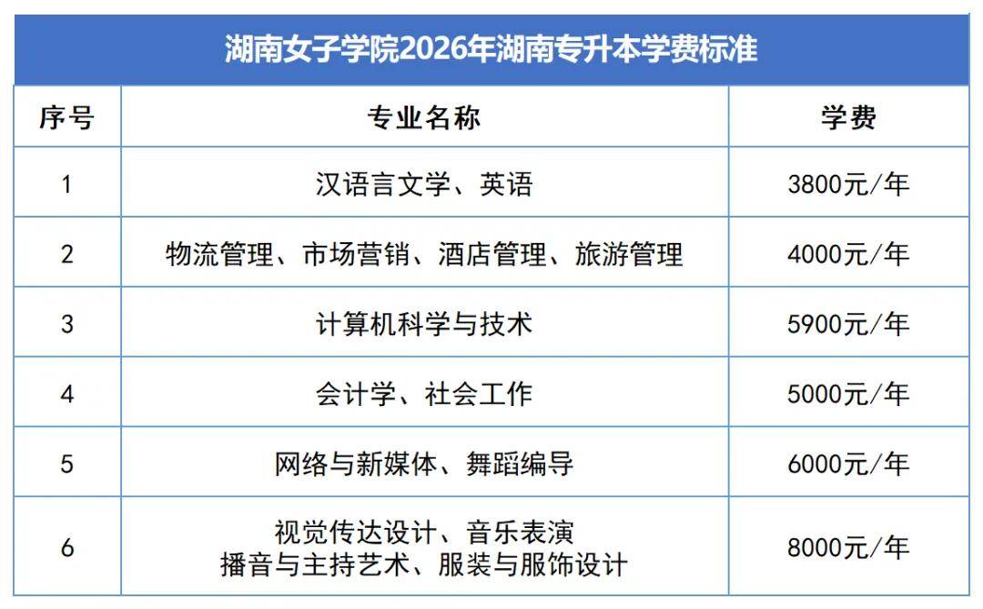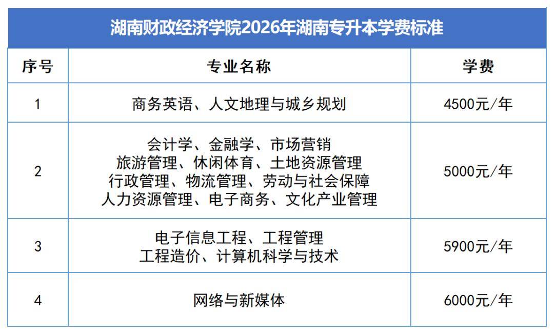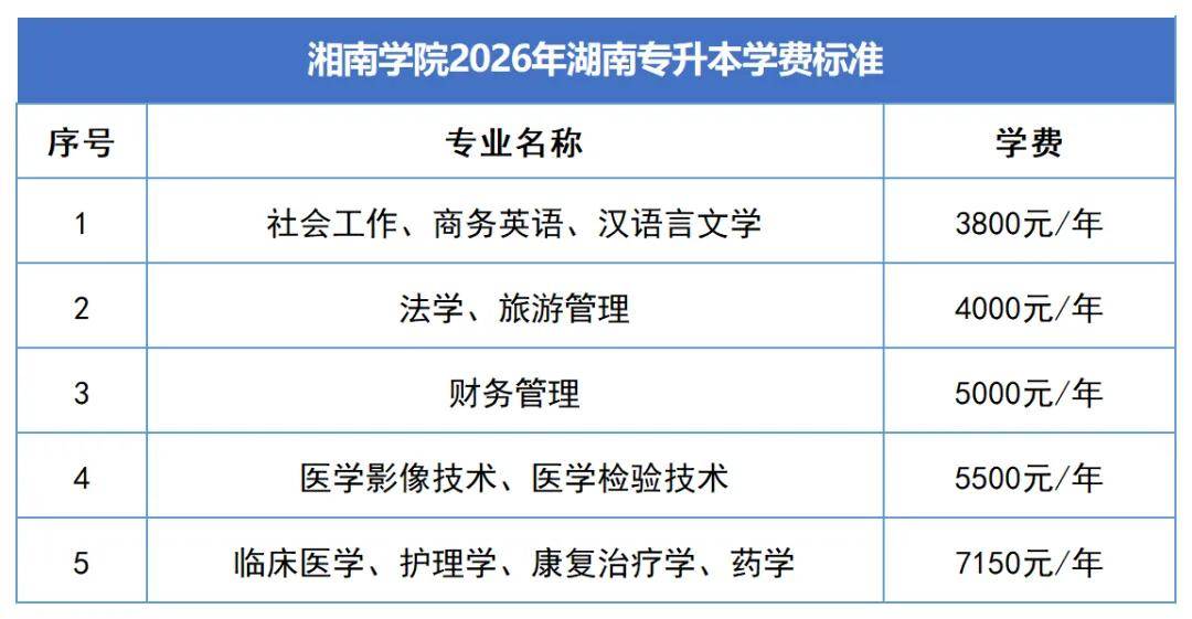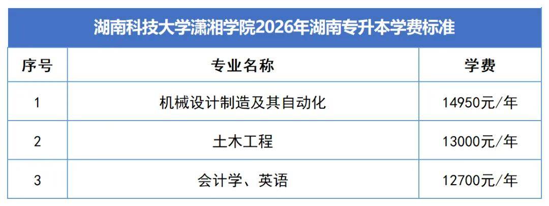 2. 2026年湖南专升本新生学费与2024级本科生一致。