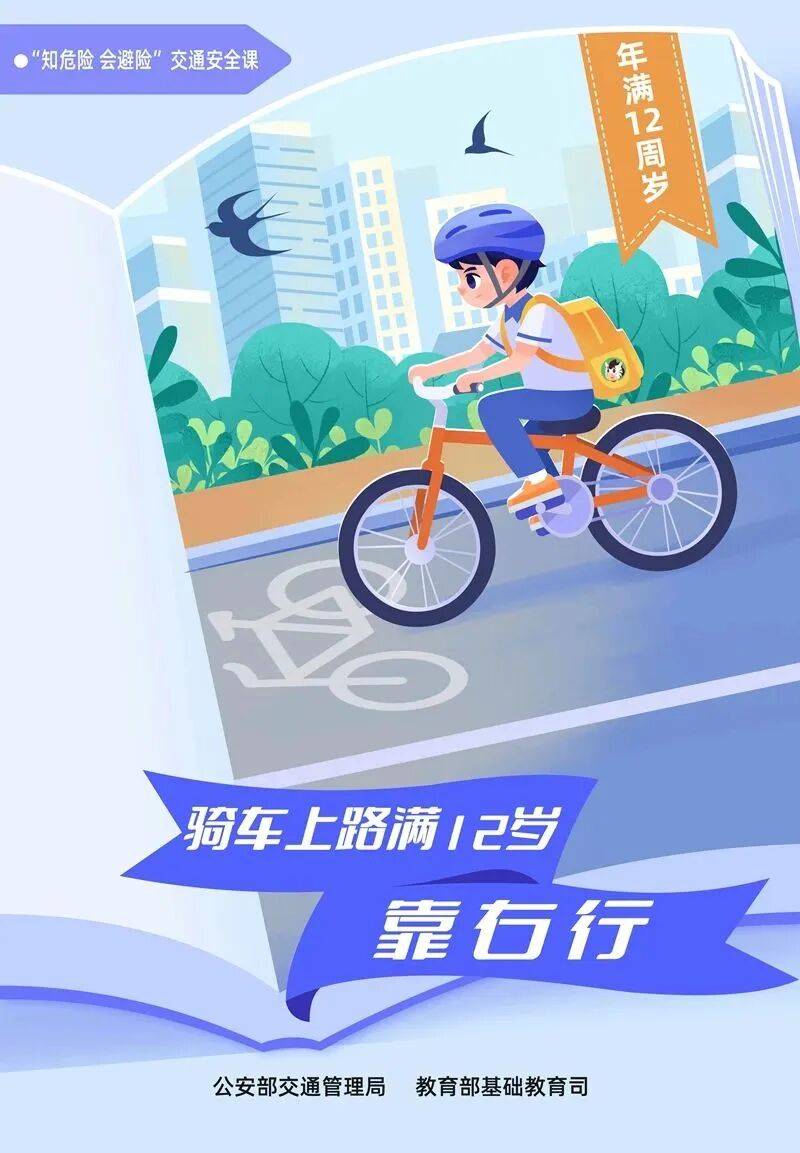 “未满12周岁的小孩不得骑自行车上路,未满16周岁的小孩不得骑电动自行车上路,骑乘电动自行车务必规范佩戴头盔”。