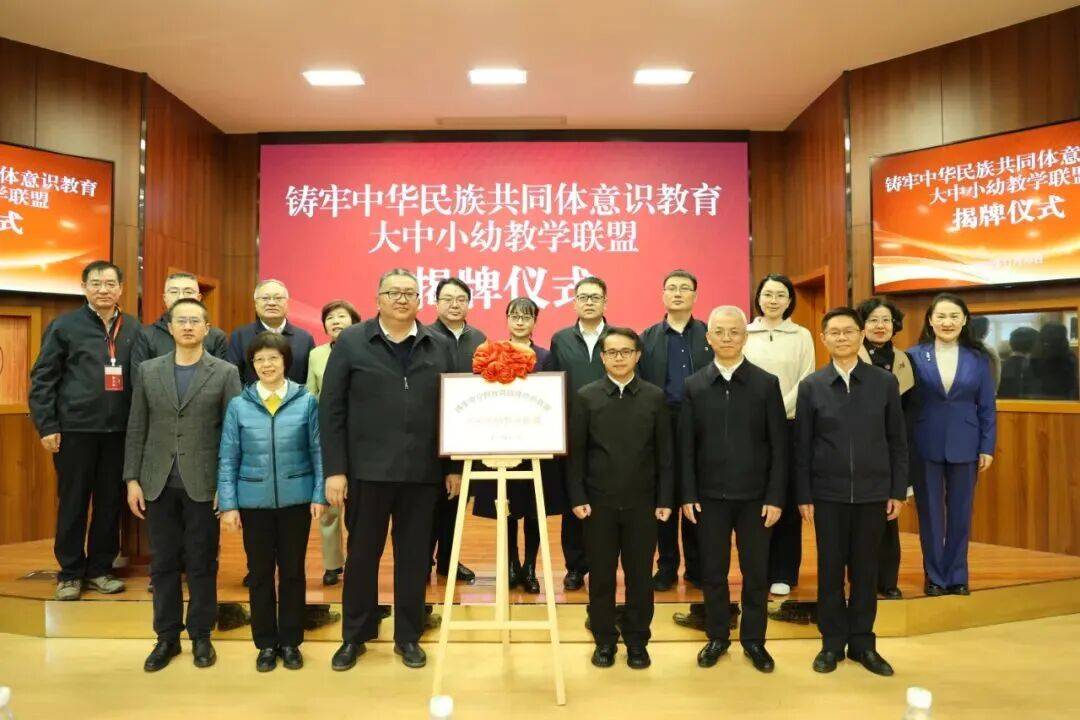 在与会人员共同见证下,“铸牢中华民族共同体意识教育大中小幼教学联盟”正式揭牌成立。联盟的成立,得到了40余所京内外中小学和幼儿园的支持。