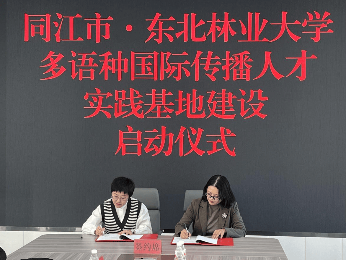 启动仪式上,同江市文体广电和旅游局与东北林业大学外国语学院签署研究生创新实践基地共建协议,并现场为东北林业大学多语种国际传播人才实践基地授牌。