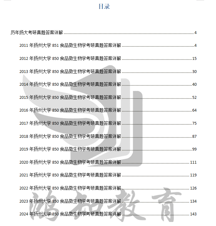 2011-2024年扬州大学850食品微生物学考研真题参考答案【答案到24】