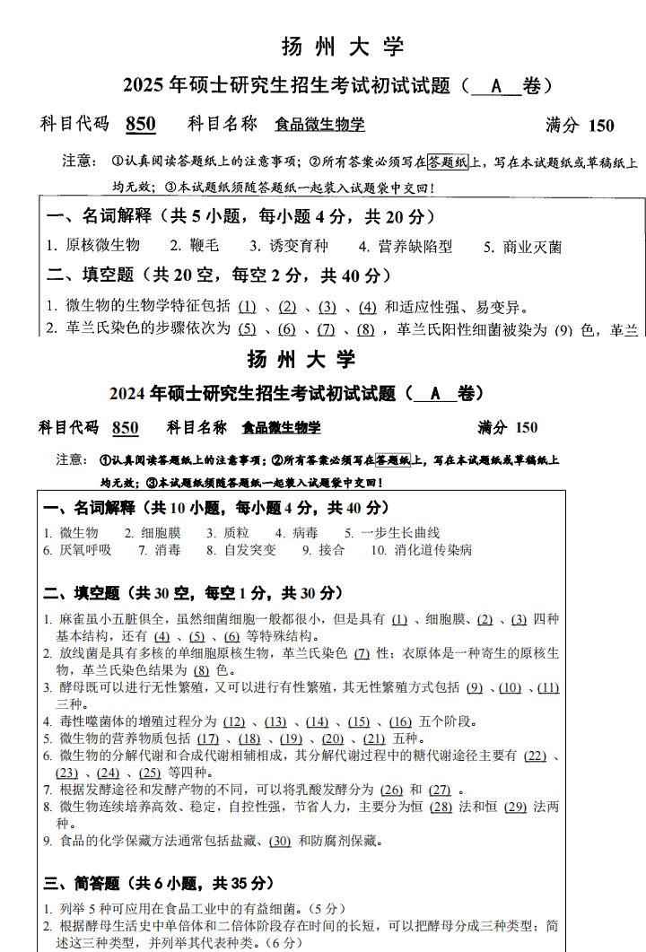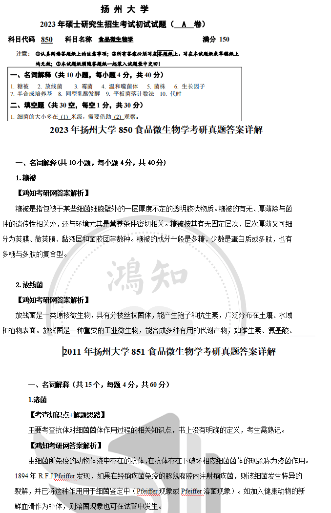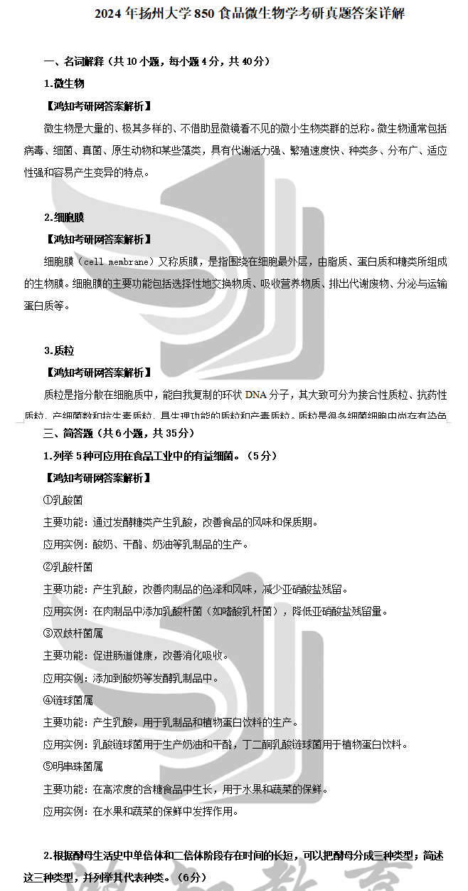 2024 年扬州大学 850 食品微生物学考研真题答案详解