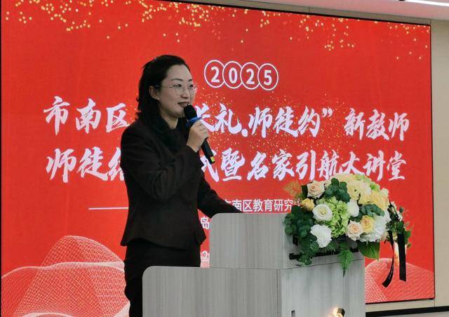 12月2日下午,市南区教育研究中心在青岛市实验小学举行“成长礼·师徒约”新教师师徒结对仪式暨名家引航大讲堂。青岛市教育科学研究院副院长李一,市南区教育研究中心主任刁丽霞,副主任张文龙,市南区教育保障中心人力资源科科长叶常青,市南区教育研究中心培训办公室主任杨国青,青岛市实验小学书记、校长马肇喆等领导出席活动。全区入职两年的新教师及区域学科师傅160余人齐聚一堂,共同参与这场融仪式感、专业性、使命感与体系化于一体的教师成长盛会。