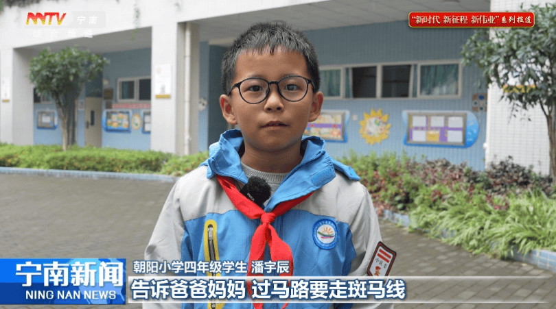 朝阳小学四年级学生 潘宇辰:通过这次活动,我也要把我学到的交通安全知识带回家,告诉爸爸妈妈,过马路要走斑马线,骑车要戴头盔。
