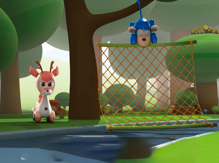 “我要抓住这个家伙!”拉拉下定决心。她想出了一个新计划:让蹦蹦张开一张网等着,而她自己去把那个捣蛋的家伙引出来。