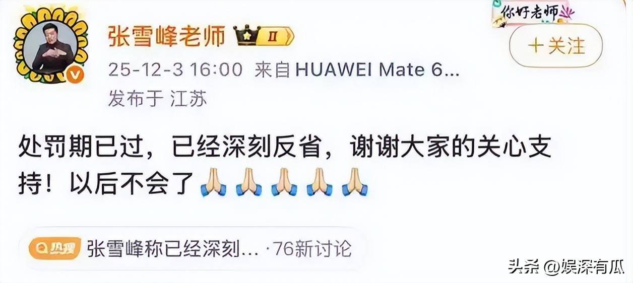 如今,禁言处罚期已过,张老师也发文说深刻反省过了。未来他会怎样,是真正痛定思痛、重归本心,还是继续在流量的漩涡里打转,谁也说不准。