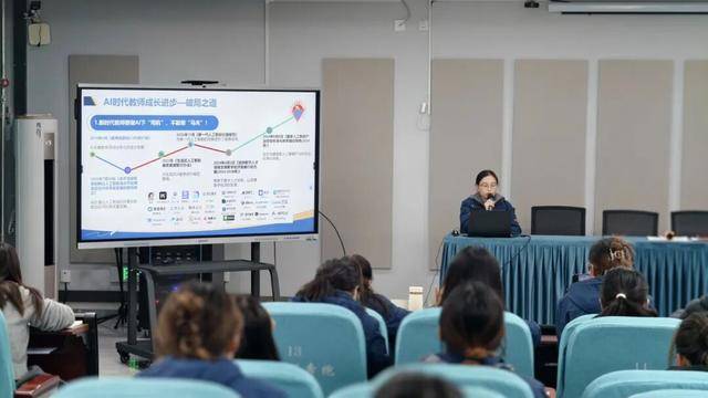 赵婧老师在分享中提出“AI是乘数,教育是基数,基数决定一切,连接AI与学生的核心始终是教师的专业教学”的核心观点。会上,全体教师共同观摩了AI赋能教学优质课例,直观感受技术与课堂融合的实践成效。赵老师进一步明确“实施AI课堂7步走”实践框架,强调AI赋能教学不能止于形式创新,更要聚焦“走深走实”,通过课例展示、集体研讨、校本研修等方式,推动AI工具从“被动使用”向“主动创新”转变,切实破解教学痛点、提升育人质效。