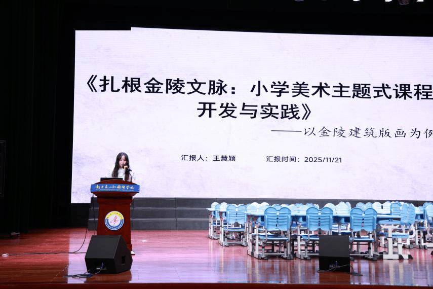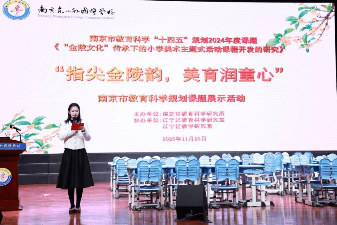 2025年11月25日,由南京市教育科学研究所主办,江宁区教育科学研究室、江宁区教学研究室协办,南京东山外国语学校承办的“‘金陵文化’传承下的小学美术主题式活动课程开发教学展示”活动,在我校青春剧场拉开帷幕。