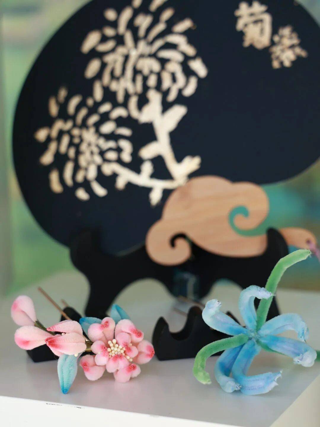 赵凌雪老师开设了《金陵绒花——瓶花雅韵》展示课。她带领学生体验非遗“金陵绒花”的指尖艺术,学习传统技艺,亲手制作一朵永不凋谢的绒花,并将其巧妙布置于瓶中。这堂课,让我们一起感受丝绒的温润,在缠绕与塑造中,体会匠心之美,让古老技艺在我们的手中绽放新的雅致韵味。