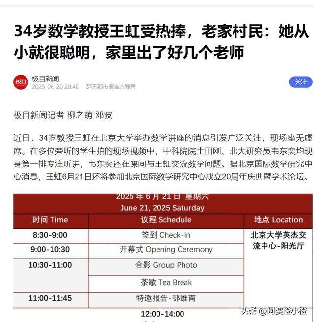 她在北大的讲座视频被反复剪辑,成长经历被自媒体翻来覆去地说,甚至出现了“王虹同款学习法”“培养数学家的秘诀”这类营销文案。