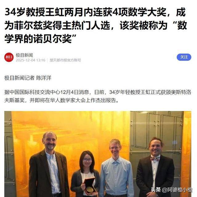 2026年菲尔兹奖评选越来越近,之前还没有中国籍学者拿过这个“数学界诺贝尔奖”,王虹的出现,让不少人看到了希望。