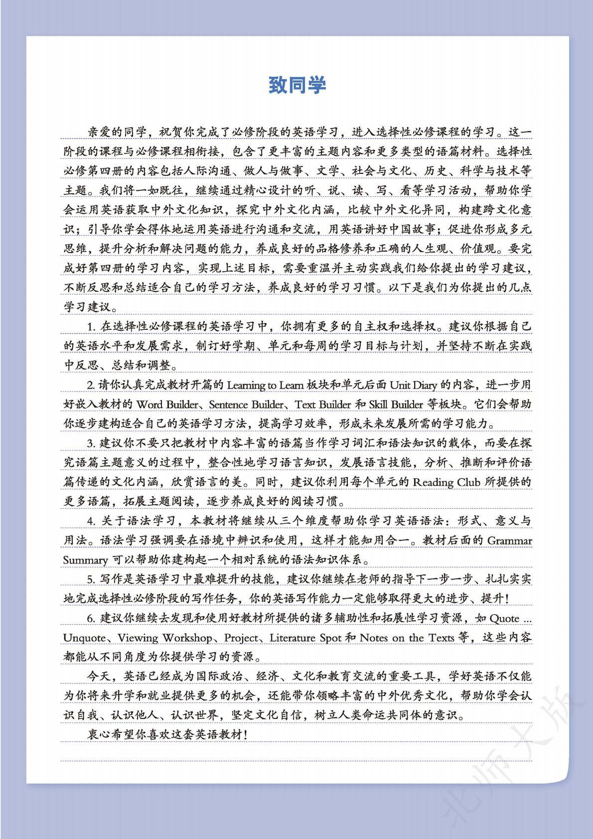 为了帮助高中生自主预习与有效复习,我们整理了2026新教材北师大版高中英语选择性必修四电子课本,教材突出跨学科思维与实际应用能力的培养,下面以图片的形式呈现给大家,希望可以帮助到大家。