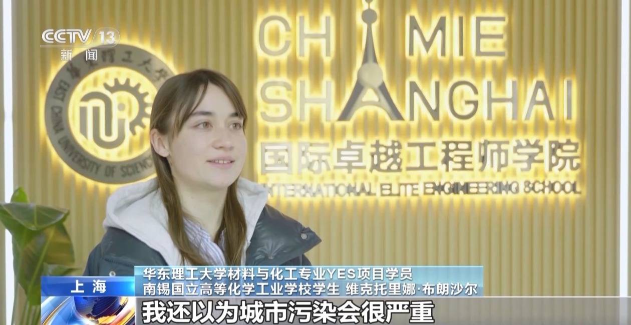华东理工大学材料与化工专业YES项目学员 南锡国立高等化学工业学校学生 维克托里娜·布朗沙尔:来中国之前,我还以为城市污染会很严重,事实并不是这样,上海街头有很多电动汽车和电动自行车。