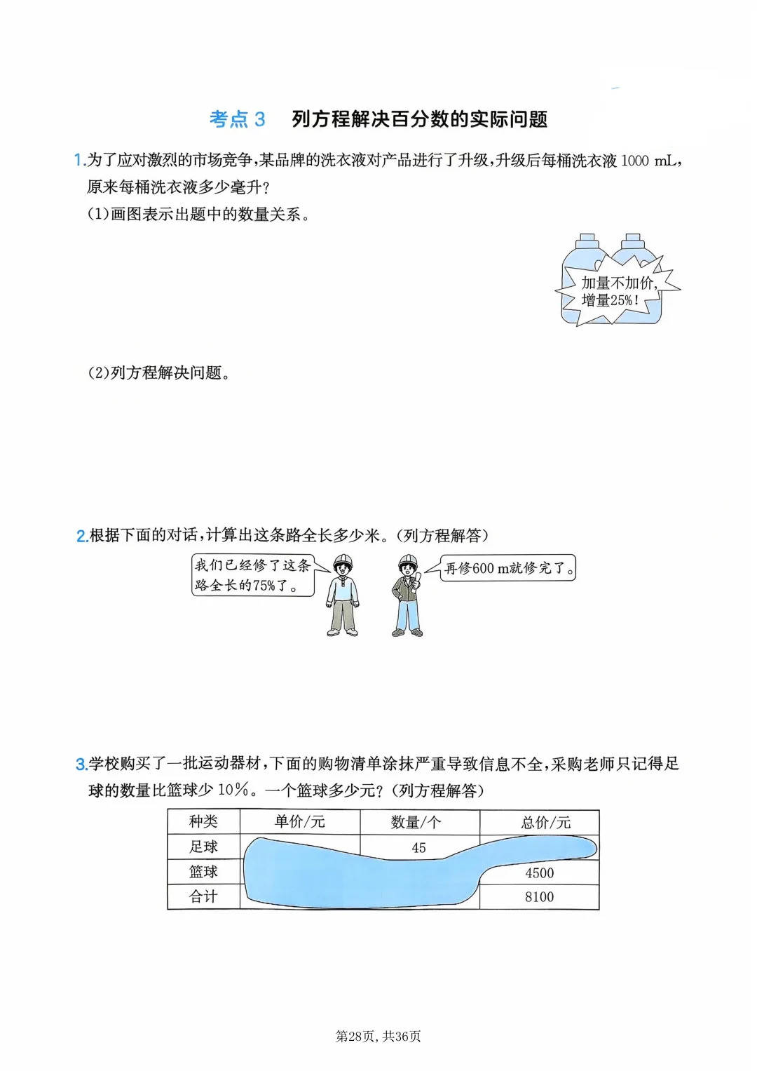 北师大六年级上册数学应用题情景专项练习太戳考点了!这波是 36 页全单元练习,涵盖圆的认识 / 周长、观察物体、列方程解百分数问题等核心题型,连 “中国天眼周长计算”“洗衣液增量问题”“不同位置观察物体” 这类情景题都包含,从基础概念到实际应用全覆盖!