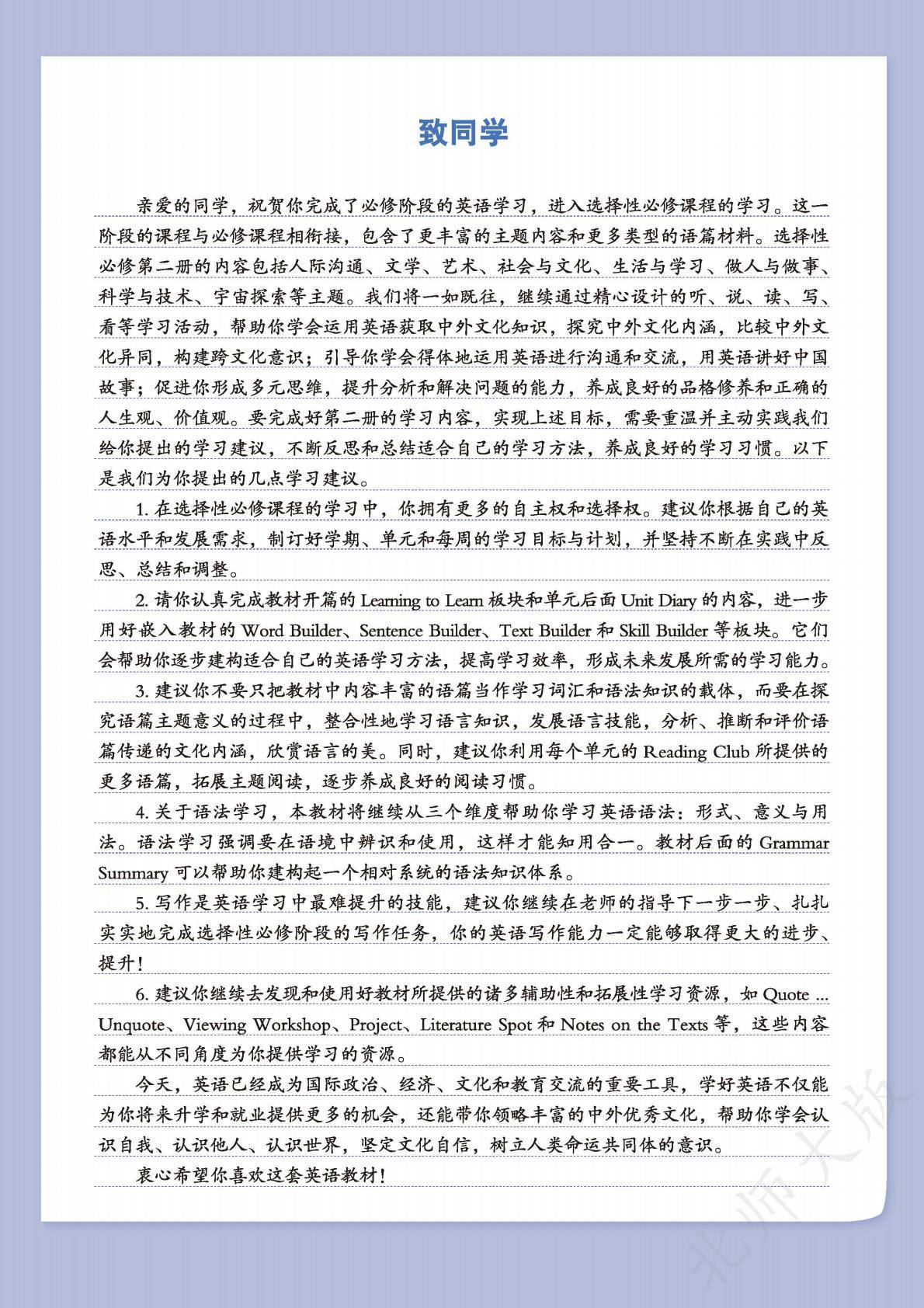 北师大版高中英语选择性必修二电子课本在线阅读