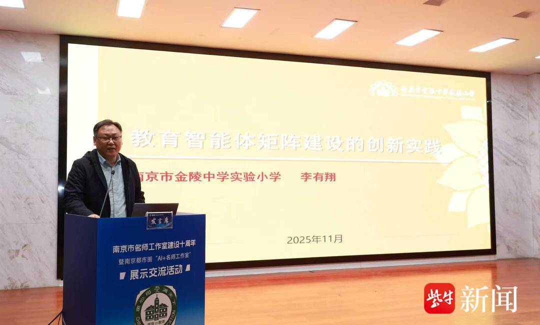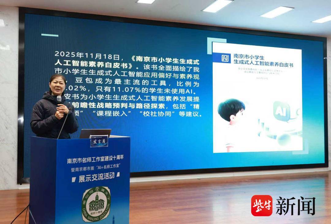 11月28日,南京市名师工作室建设十周年暨南京都市圈“AI+名师工作室”展示交流活动在南京市金陵中学实验小学举行。活动同步开通线上直播,来自湖南、河南、安徽、青海等教育协作地区的4000余人同步收看直播。