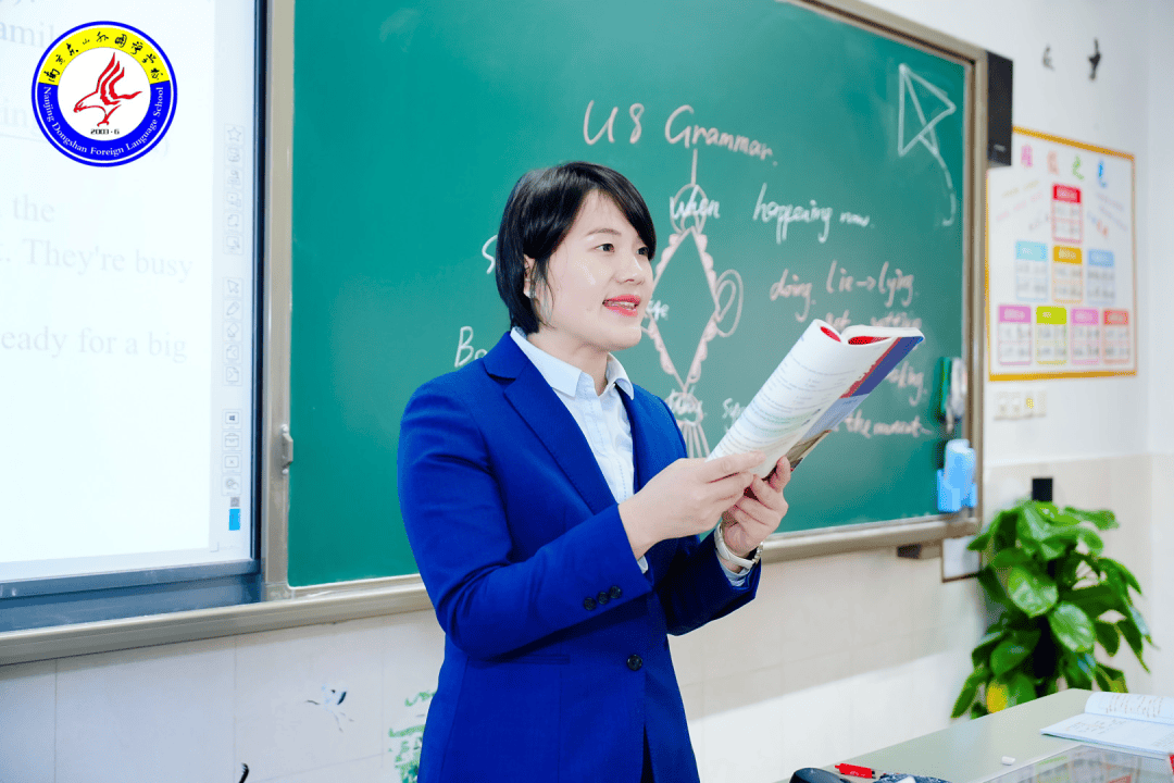 一首青春洋溢的歌曲《Lemon Tree》,开启刘欣欣老师的英语课,想象中枯燥难懂的语法课,不仅孩子们上得兴致盎然,很多家长也跟着一起唱一起说。“这节课讲授‘现在进行时’,围绕课本上的单元语境《Let’s celebrate》展开。”刘老师将校园生活融入话题,东外红歌赛、东外运动会......孩子们都有亲身经历,一下就将知识点运用到了生活中。刘老师还在两个环节运用了AI :她将书本上的图片“活”了起来,变成视频,更加凸显语法的语用意义;引入智能体,和同学们一起总结本节课所学的内容。