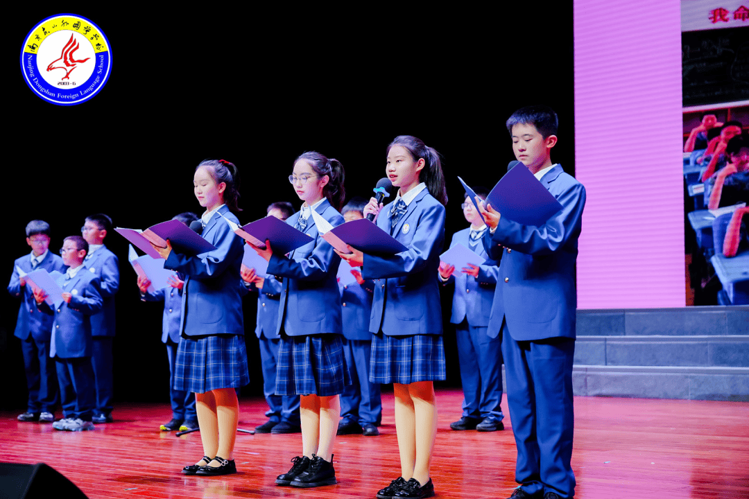 下午,一场全体初一学生精心准备的开放日文艺汇演在青春剧场拉开帷幕。民乐、小品、健美操、英语情景剧、配乐诗朗诵、钢琴演奏、花样跳绳、管乐合奏......各班同学轮番上台,自编自导自演,《动感弹拨》《言传身教》《辣妈辣妹》《父爱如山》《就是哪吒》《彩云追月》《跃动青春》等节目陆续登台,精彩纷呈,素养绽放。