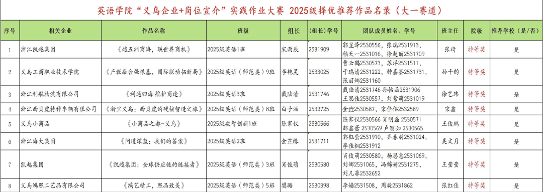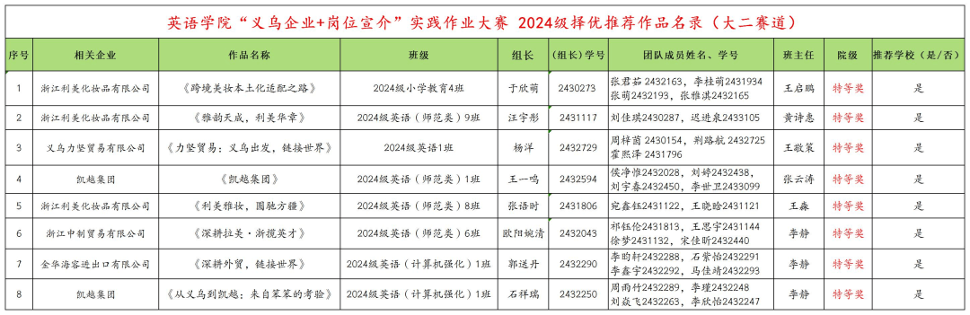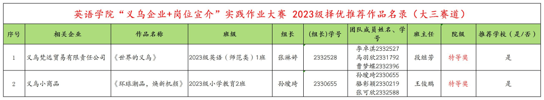 英语学院《“义乌企业+岗位宣介”实践作业大赛》特等奖 获奖名单(排名不分先后)