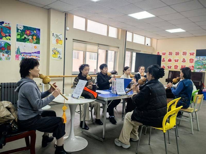 葫芦丝课堂上,同样热闹非凡。学员们紧盯乐谱,手指在葫芦丝音孔上灵活跳跃、反复调试,《侗乡之夜》《雪域踢踏》等经典曲目在指尖缓缓流淌。从最初的音准生疏到如今的流畅吹奏,每一次进步都离不开大家的专注与坚持。“以前总觉得乐器很难学,社区市民课堂给了我尝试的机会,现在已经能完整吹奏多首曲子了,特别有成就感!”李阿姨手捧葫芦丝,脸上满是喜悦与自豪。