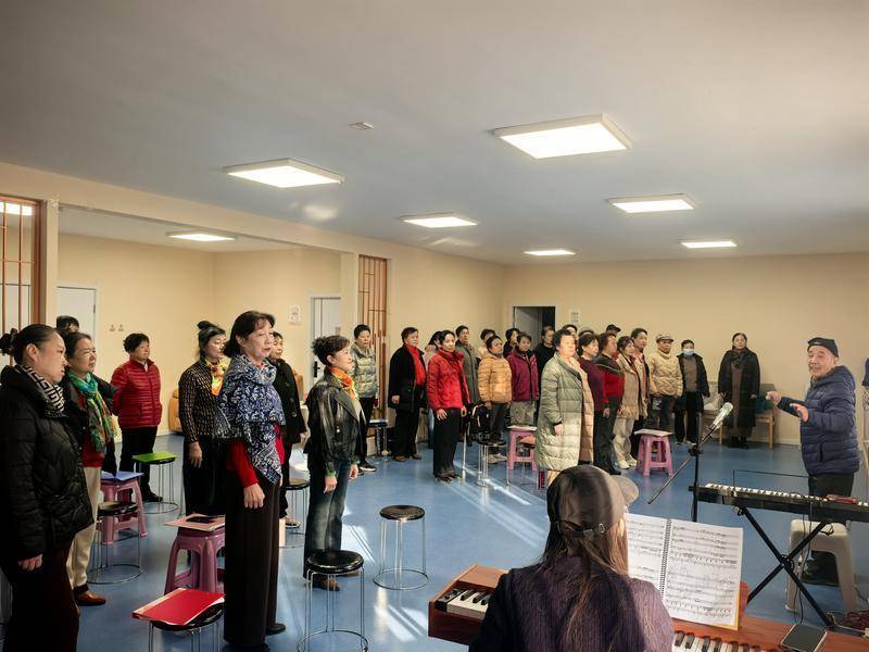走进合唱课堂,温馨氛围扑面而来。专业授课的陶老师从气息把控、发音咬字等基础要点入手,逐句示范、细致讲解,耐心调整学员的发声部位与合唱节拍,手把手指导大家打磨每一个音节。学员们热情高涨、互帮互助,在反复练习中默契渐生,从单声部的扎实演绎到多声部的和谐共鸣,《没有共产党就没有新中国》《我爱你,中国》等经典红歌回荡其间,既展现了学习成果,更饱含着对祖国的深情与对生活的热爱。“每周最期待的就是合唱课!跟着老师学唱歌,不仅嗓子舒服了、心情变好了,还结识了一群志同道合的老朋友,生活越来越充实!”退休居民赵阿姨的话语道出了学员们的心声。