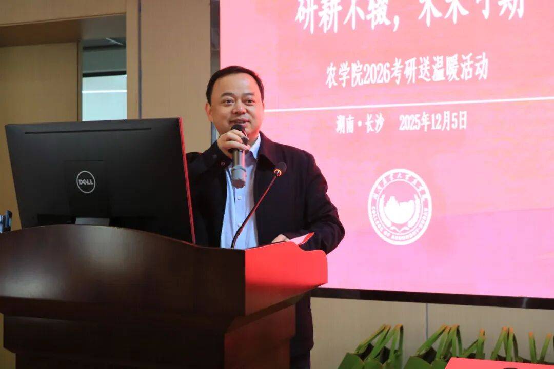 校党委副书记、农学2班班主任陈光辉,农学院院长吴俊、党委书记刘敏等院领导班子,各系主任,2022级班主任,辅导员及全体考研学子参加活动,活动由农学院党委副书记徐辉主持。