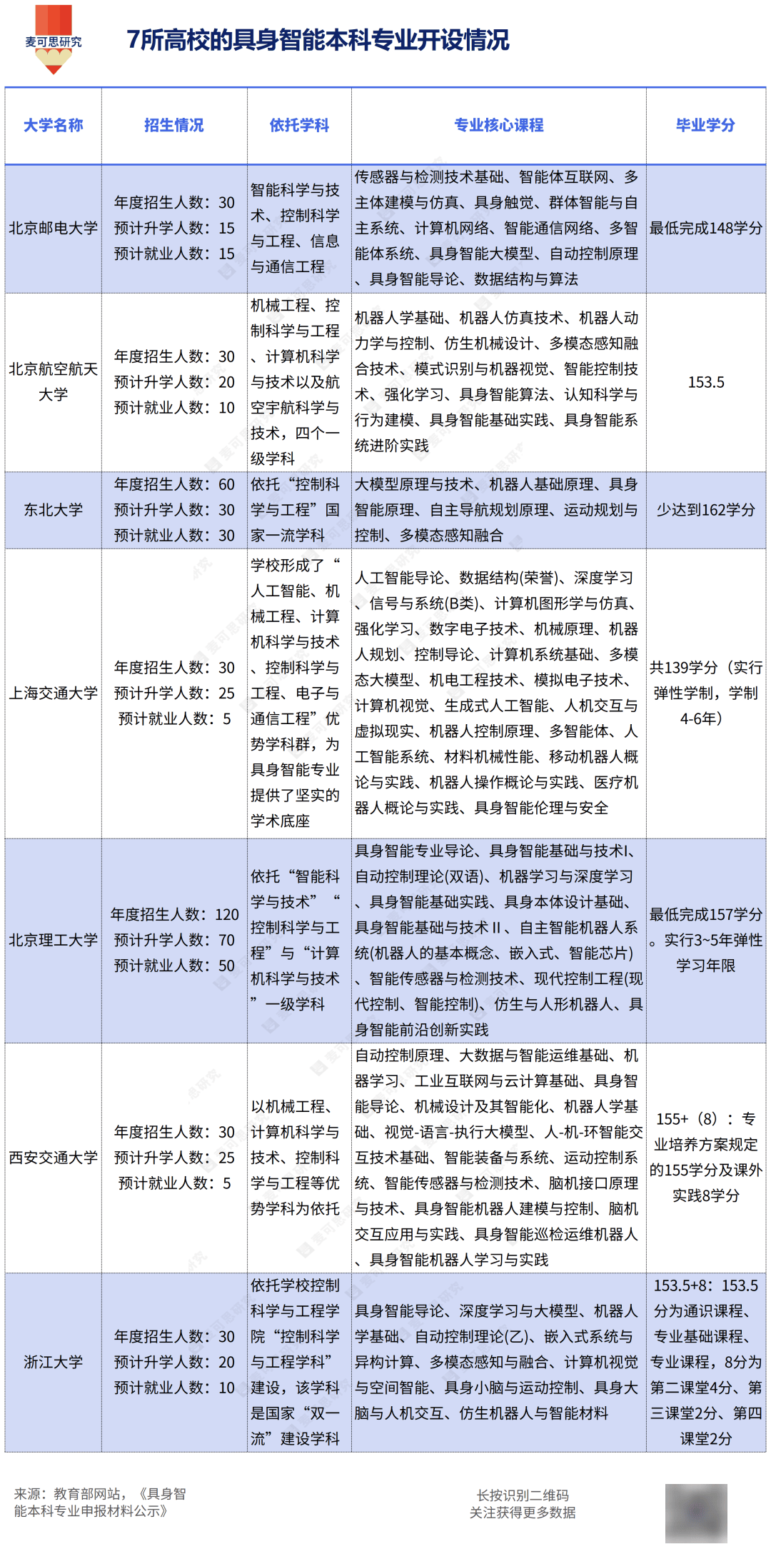 从专业归属、高校布局和培养依托三个维度来看,首批7所高校均为国内顶尖的“双一流”建设高校,尤其在信息、机械、自动化等工科领域实力雄厚。这7所高校全部将新专业置于工学(08)门类之下,体现了其作为前沿工程学科的定位。