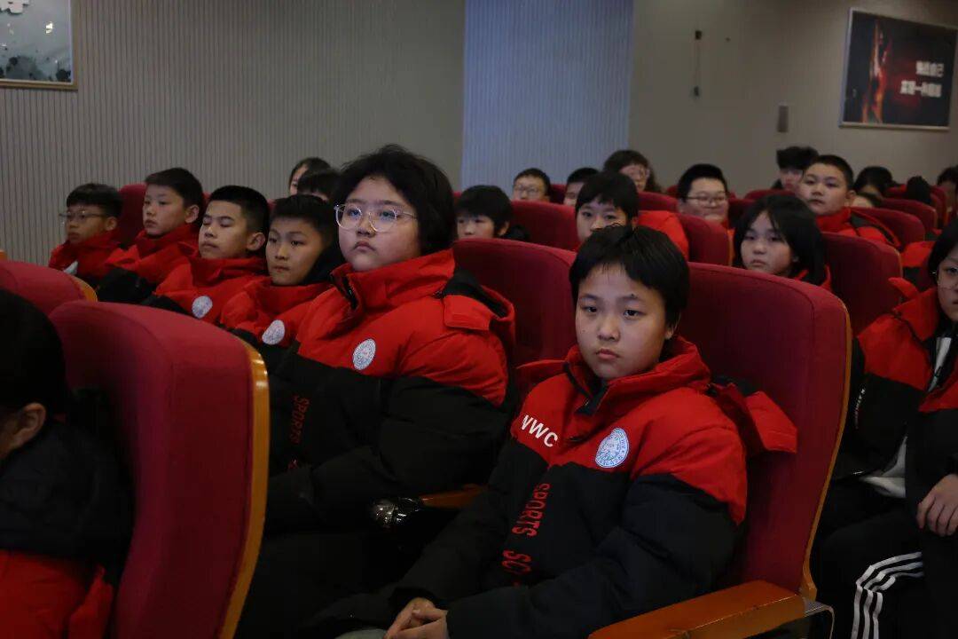 活动开始,全体学生起立,进行庄严的宪法宣誓环节。同学们面向大屏幕站得笔直,举起右拳,在褚泽言校长的带领下,齐声喊出宣誓词:“忠于中华人民共和国宪法,维护宪法权威,以体育精神践行法治准则,遵守法律、恪守规则,勤学苦练、为国争光,做宪法的忠实崇尚者和坚定捍卫者!”铿锵有力的誓言在校园里回荡,宪法的神圣感深深印在每个孩子心中。