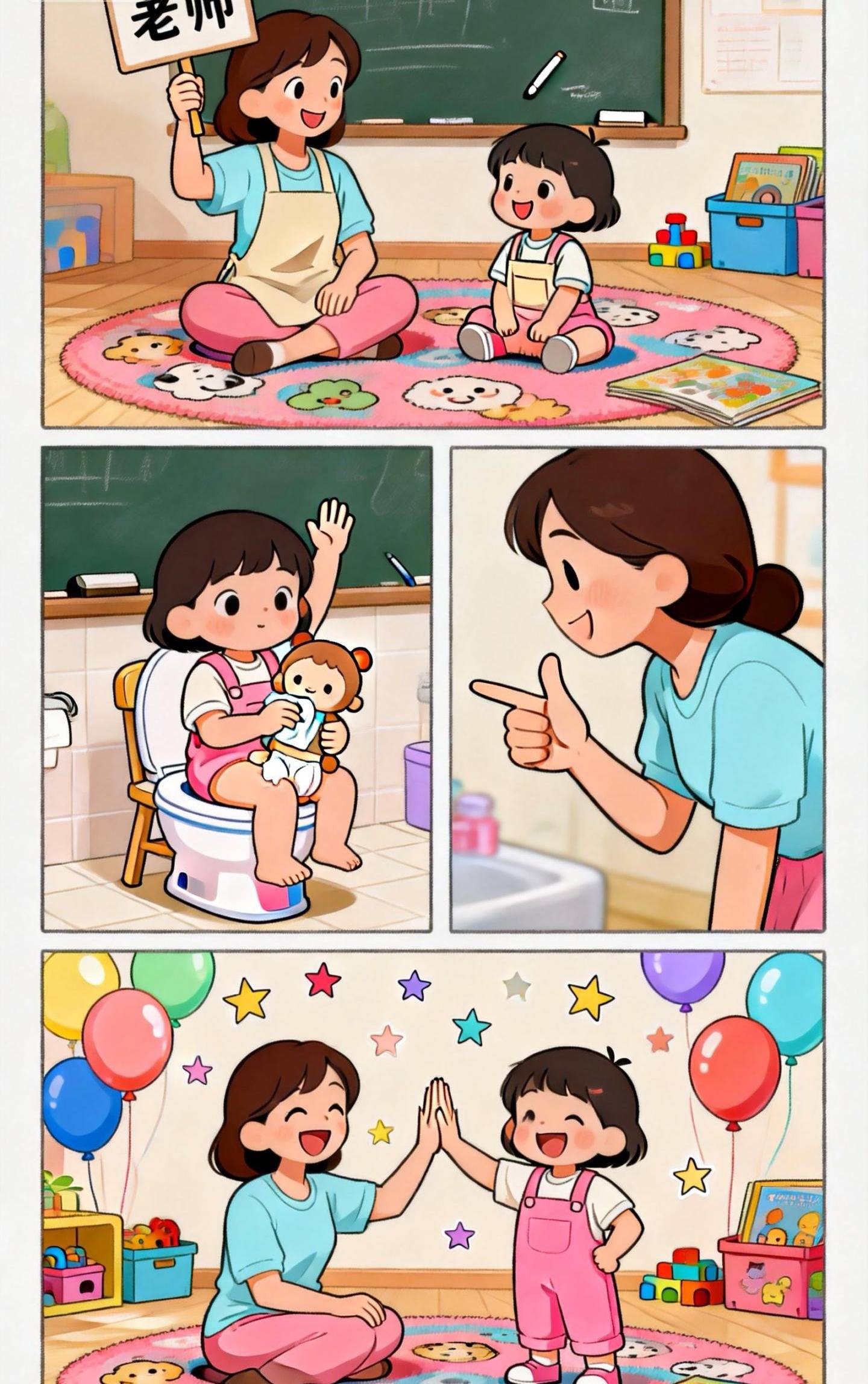千万别再批评了!可以抱着孩子,用轻松的语气说:“妈妈知道,在幼儿园上厕所有点不习惯对不对?没关系,很多小朋友都这样。憋着是不是有点不舒服?咱们一起想想办法。”先让孩子知道,你是他的盟友,不是裁判。