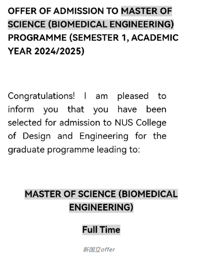 到了11月中旬,我又收到了爱丁堡大学的offer。到了11月30日,我又有了更大的惊喜,在一个早上起来,我的邮箱突然收到了新加坡国立大学的邮件,告诉我我被新加坡国立大学的生物医学工程专业给录取了。