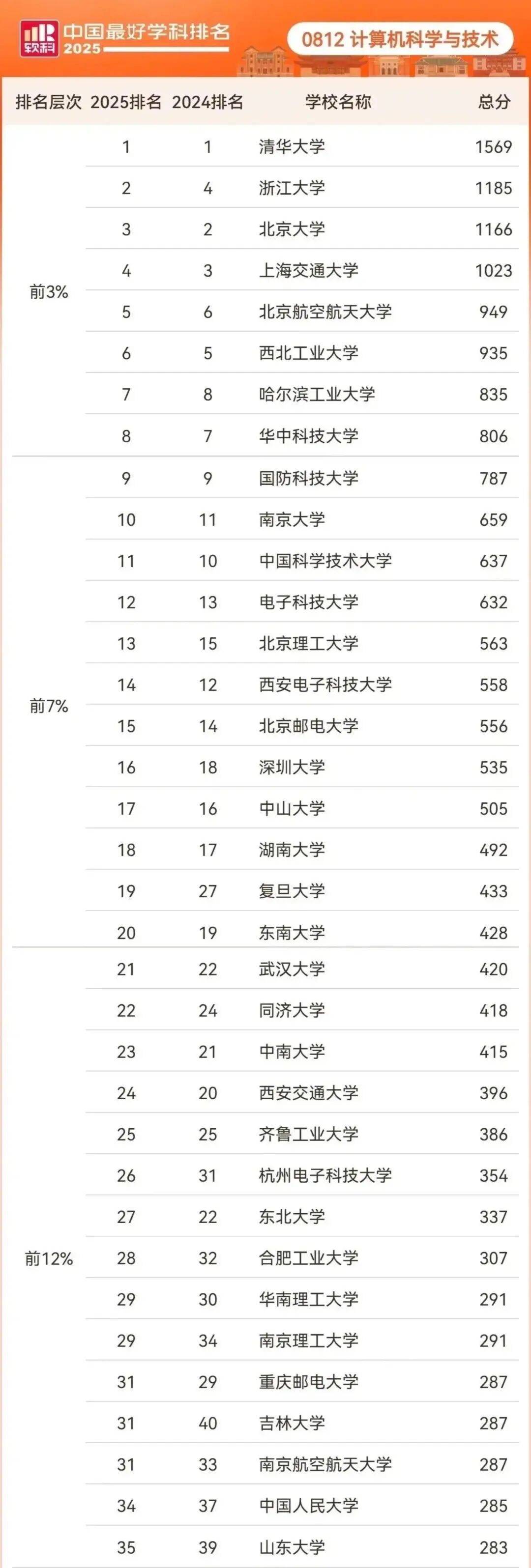 基于这样的情况,2025年软科共计在计算机科学与技术专业里面评选出35所高校,而列为A等级。下面我们就来具体看一下这些高校的具体情况。