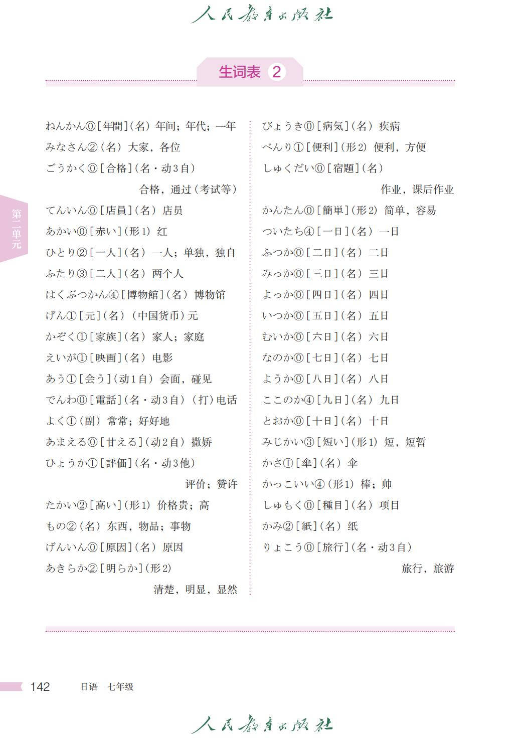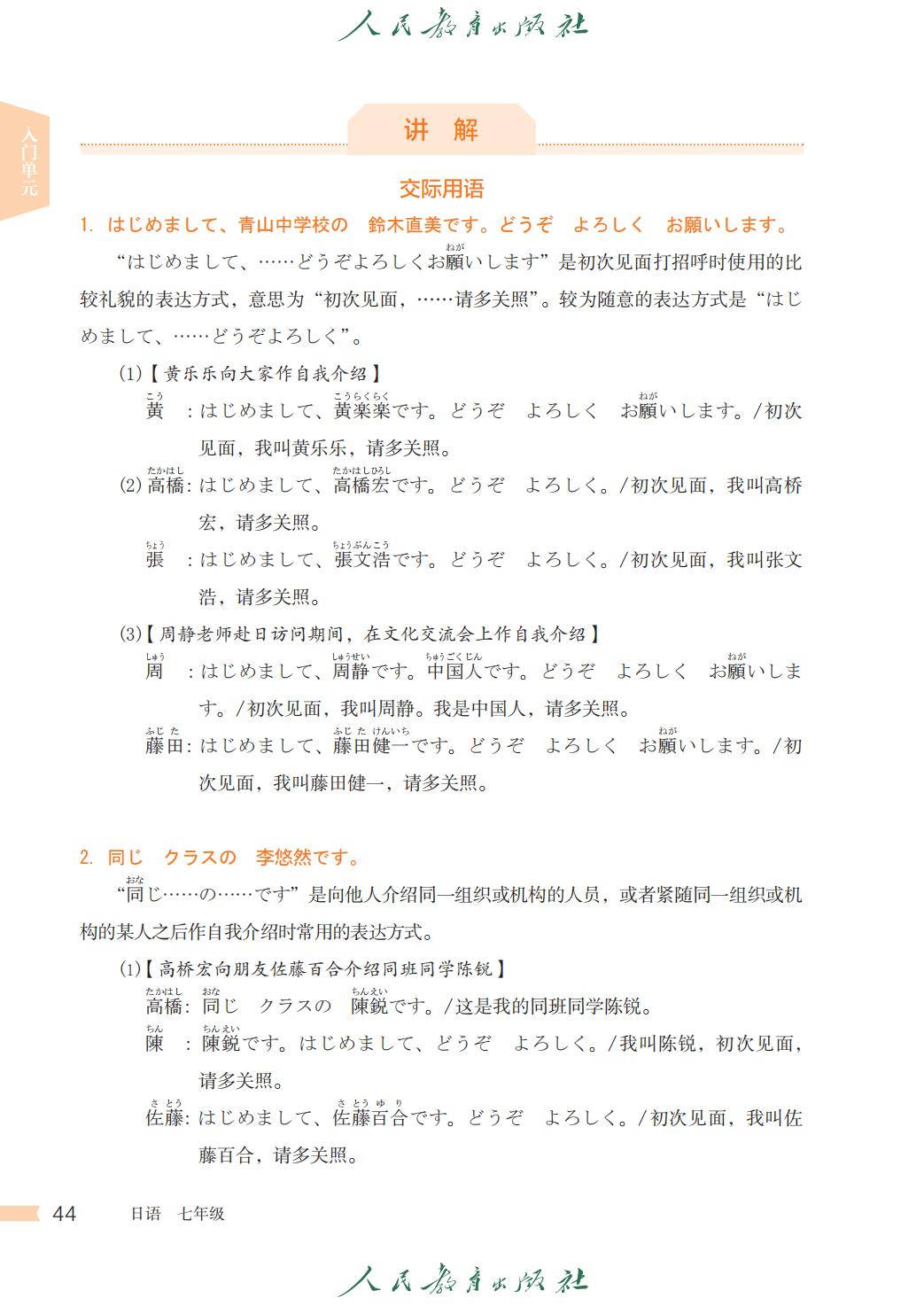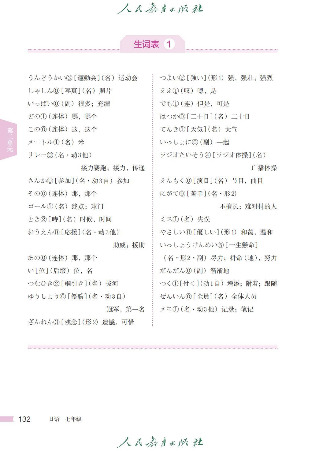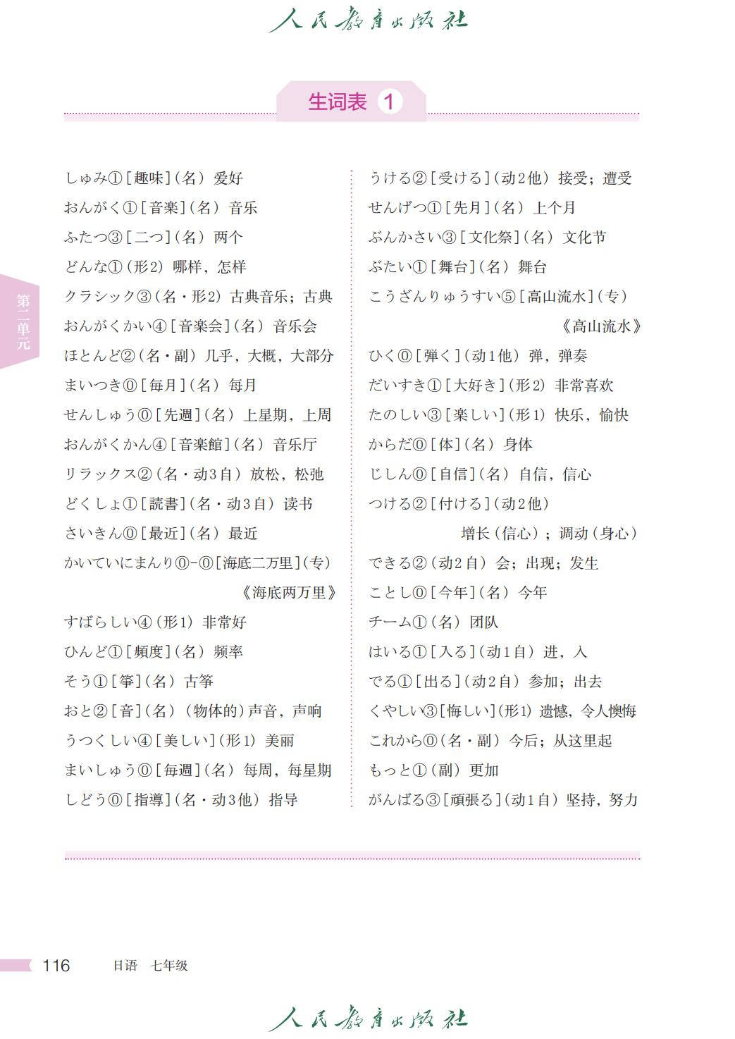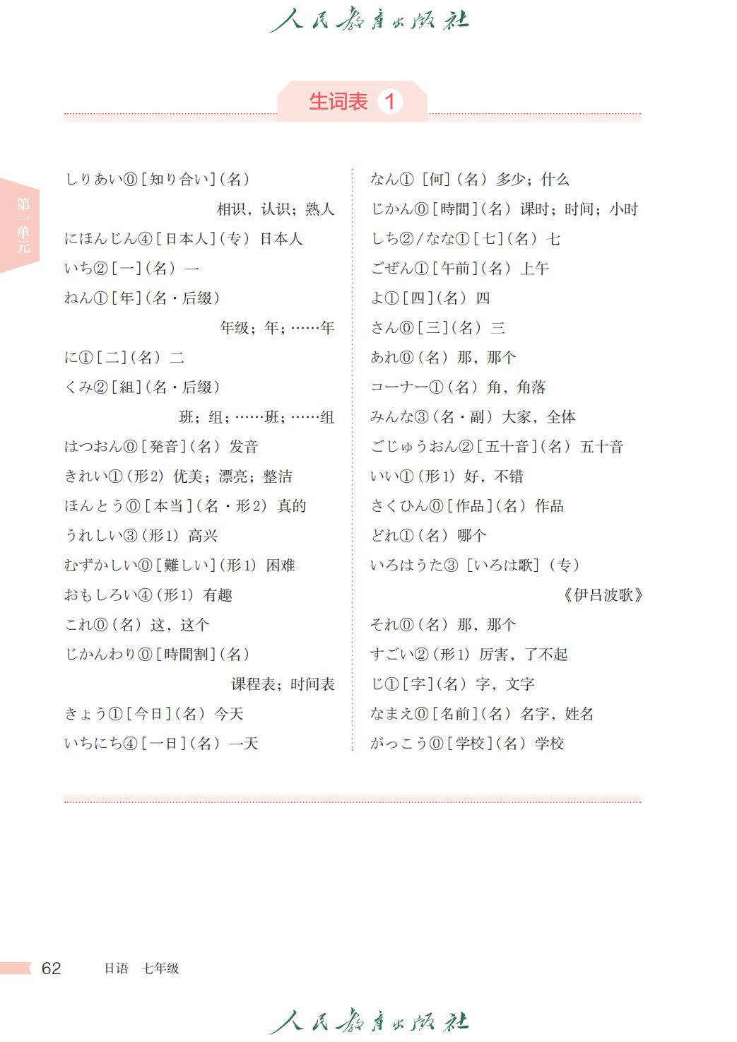 人教版七年级日语全一册电子课本图片版在线阅读