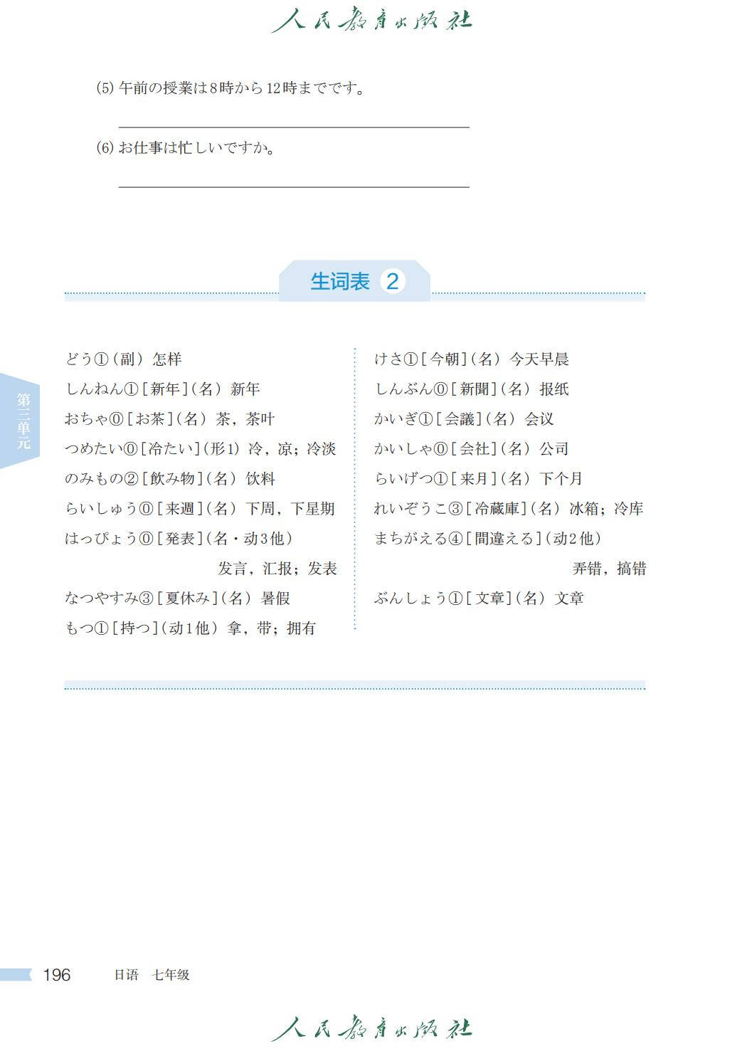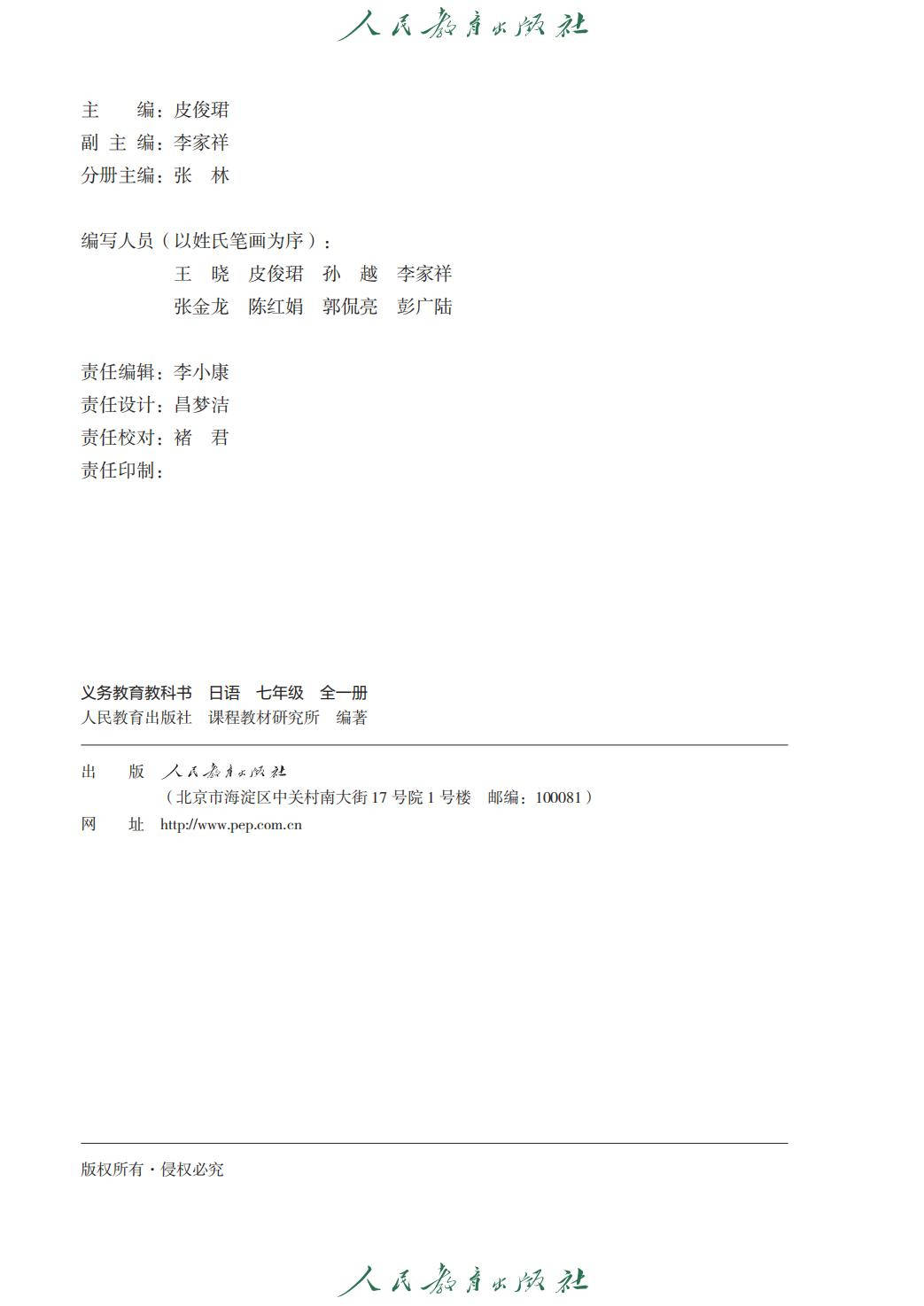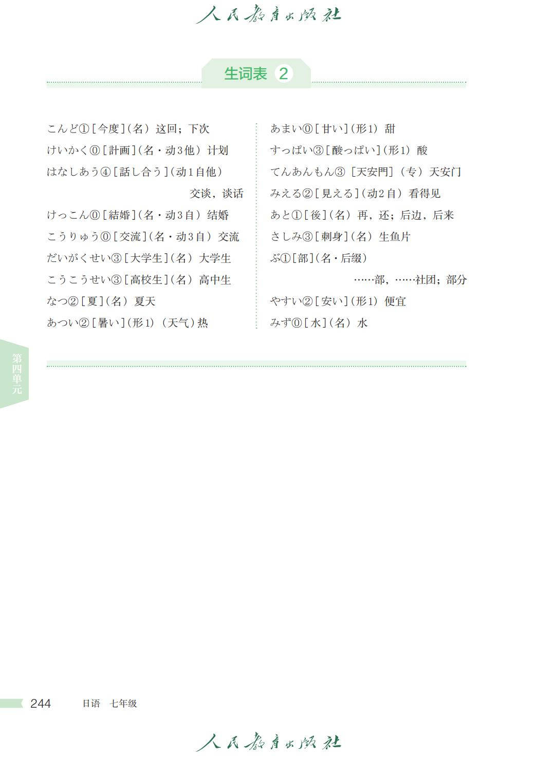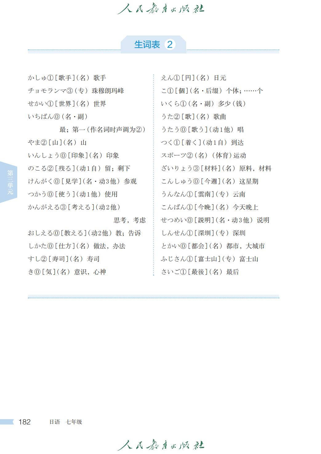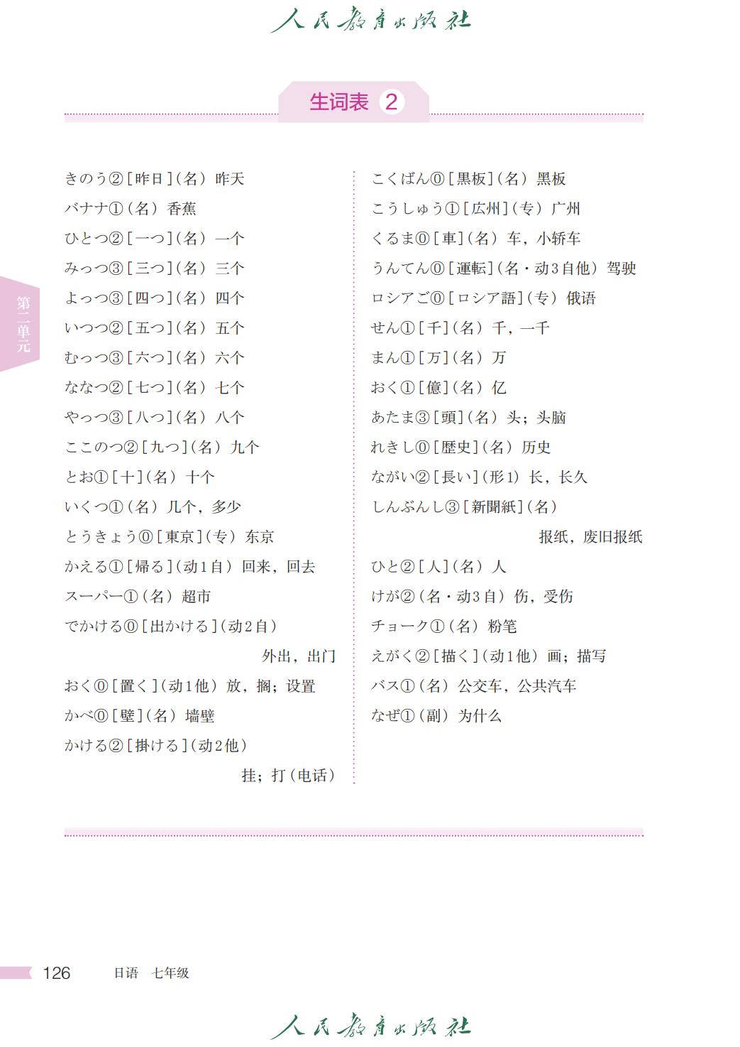 人教版七年级日语全一册电子课本图片版在线阅读