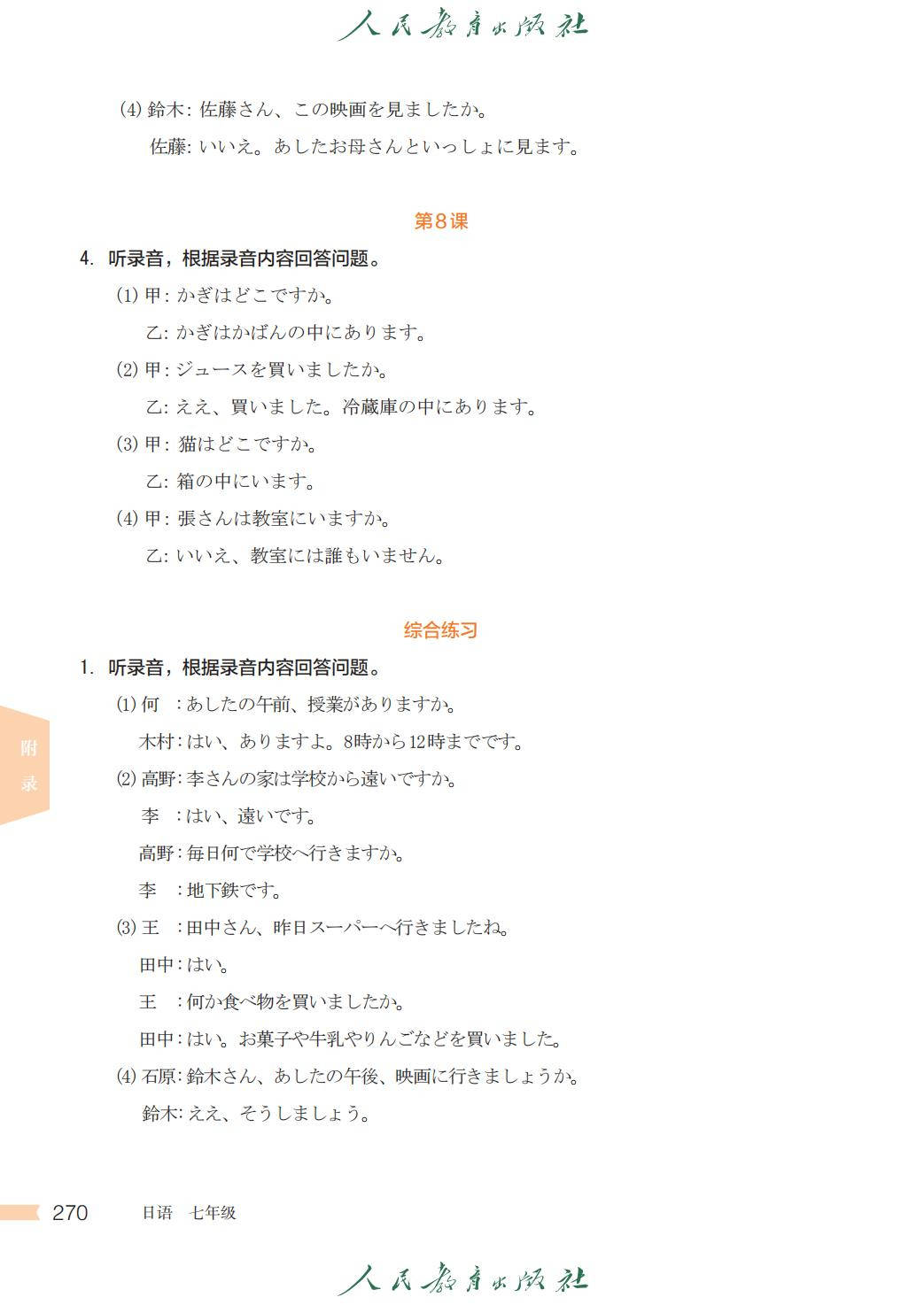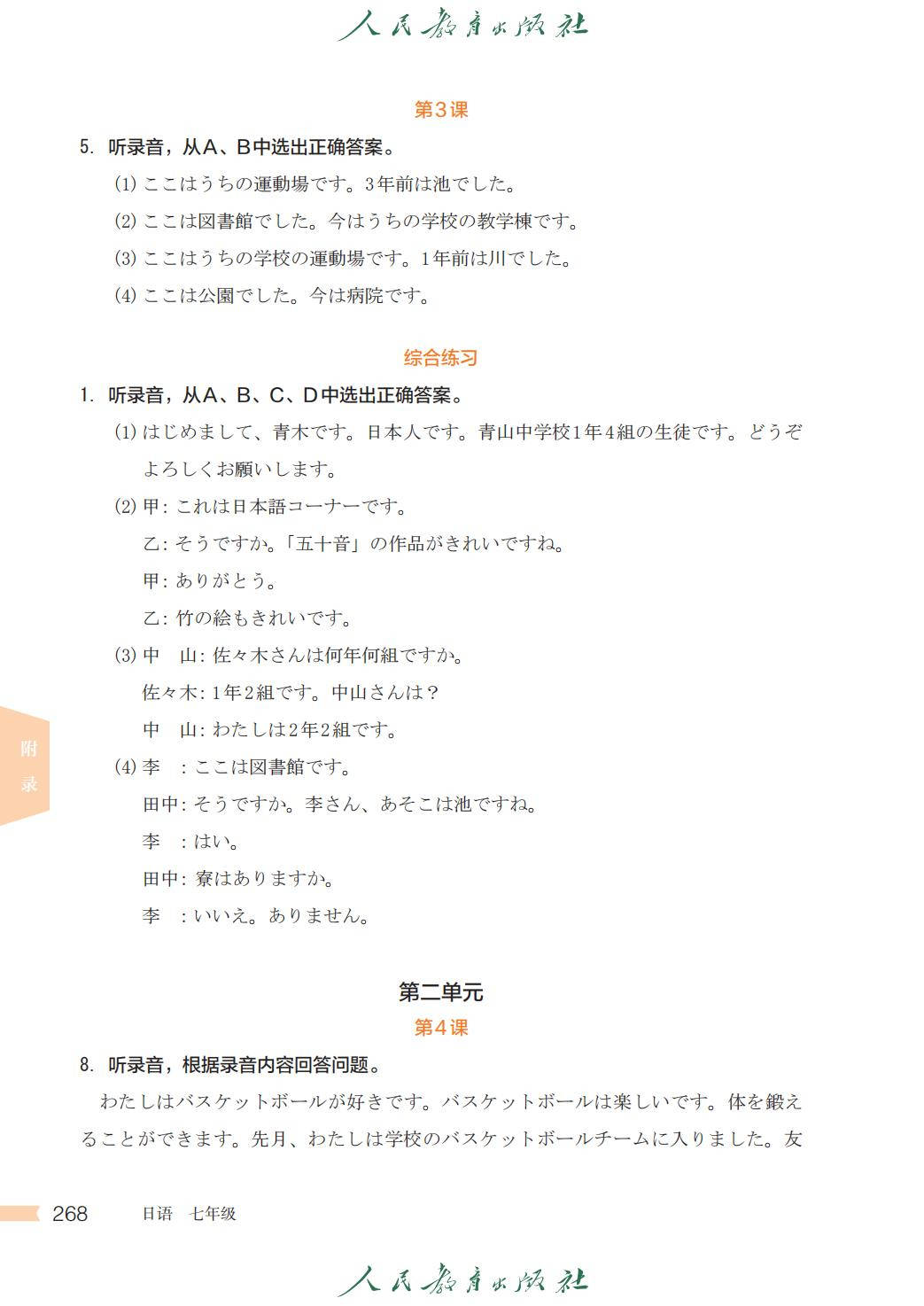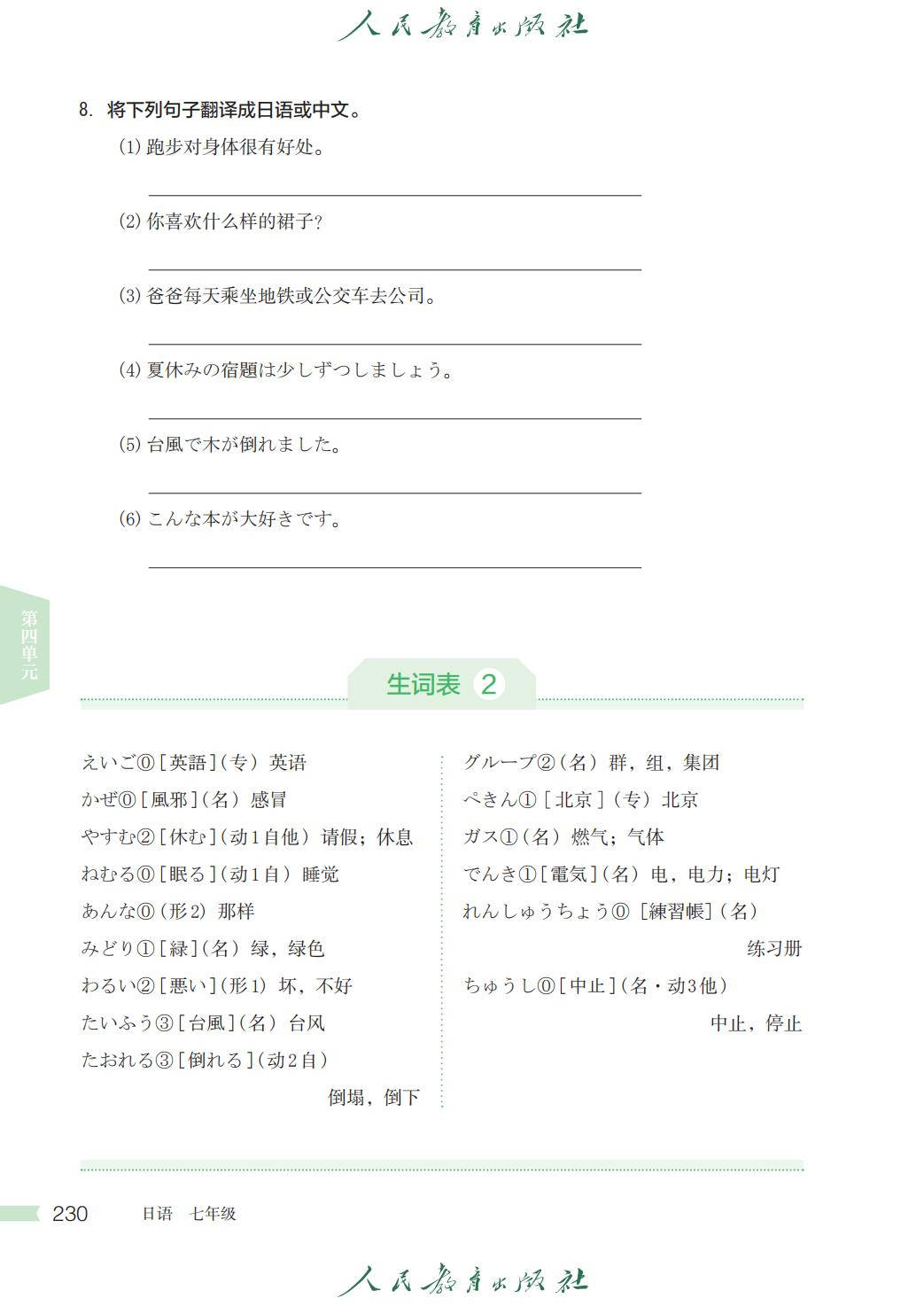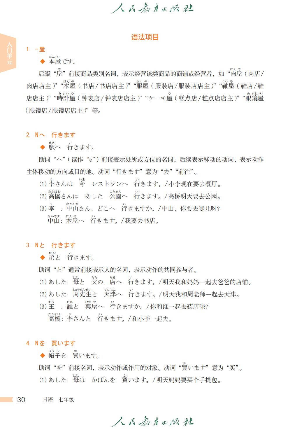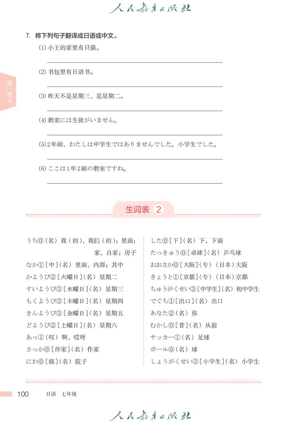 人教版七年级日语全一册电子课本图片版在线阅读